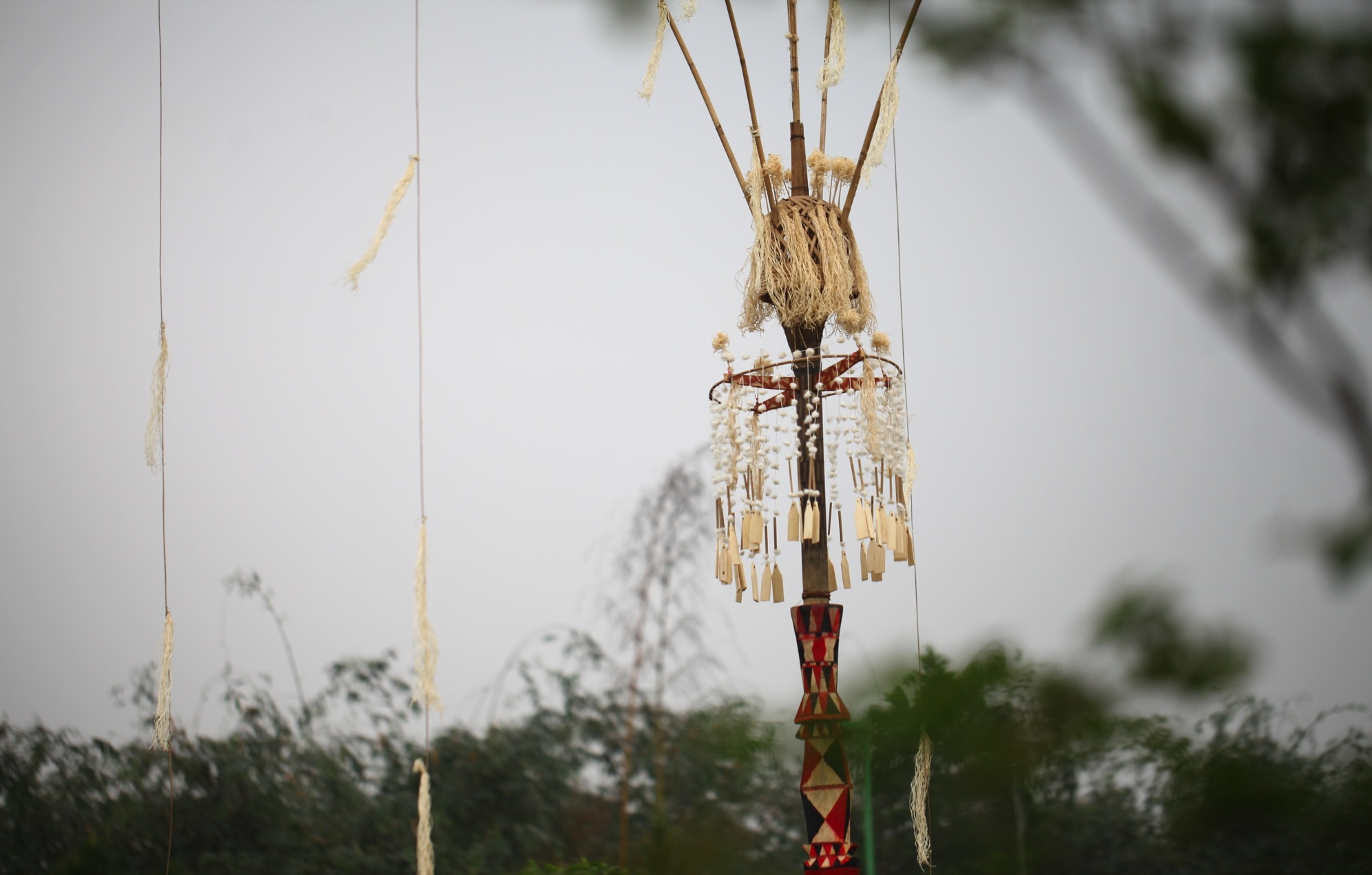Buổi lễ kết thúc sau tiếng chiêng ngân dài. Nam thanh nữ tú vui vẻ trong trang phục truyền thống nhảy múa sôi động quanh cây nêu cùng tiếng chiêng trống, kèn bầu, kèn môi,