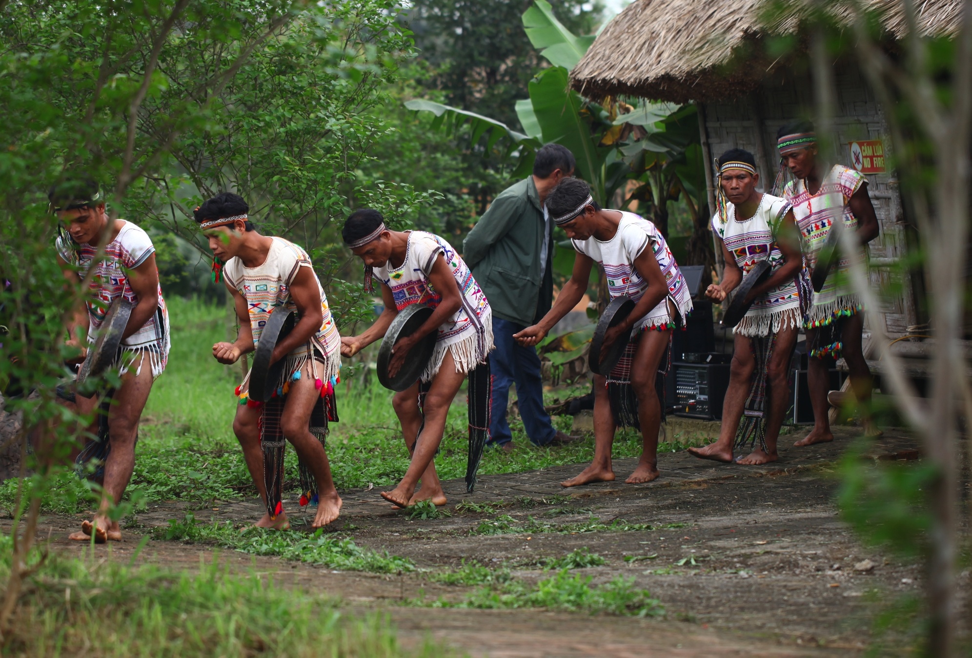 Nhóm đàn ông ngân lên tiếng chiêng truyền thống.