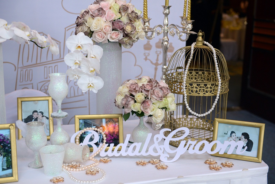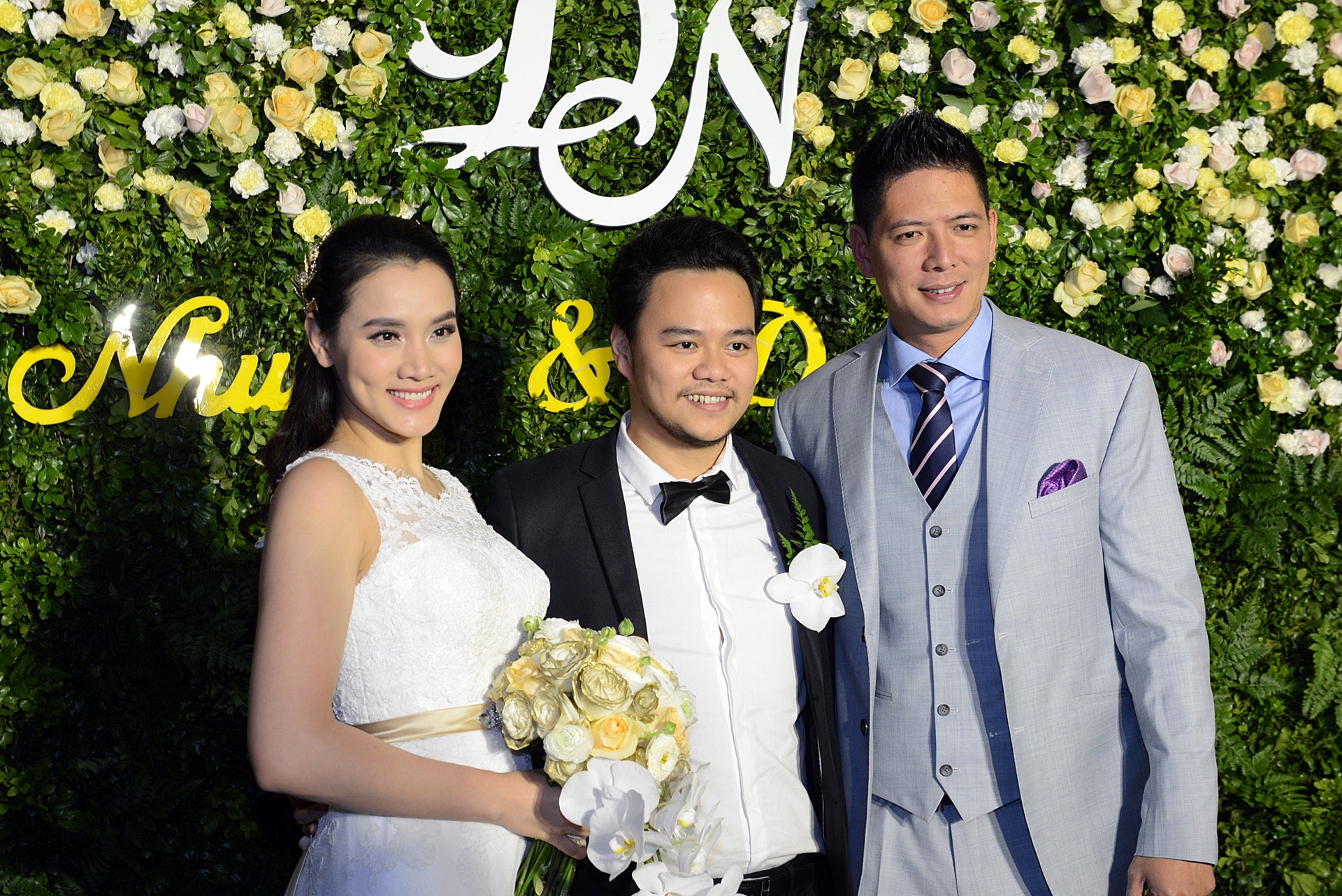 Trang Nhung và Hoàng Duy làm lễ đính hôn vào cuối năm 2014 sau hơn một năm hẹn hò. 9 tháng sau, khi con gái đầu lòng cứng cáp họ quyết định chọn ngày đẹp đãi tiệc hai họ, bạn bè tại TP HCM và Hà Nội.