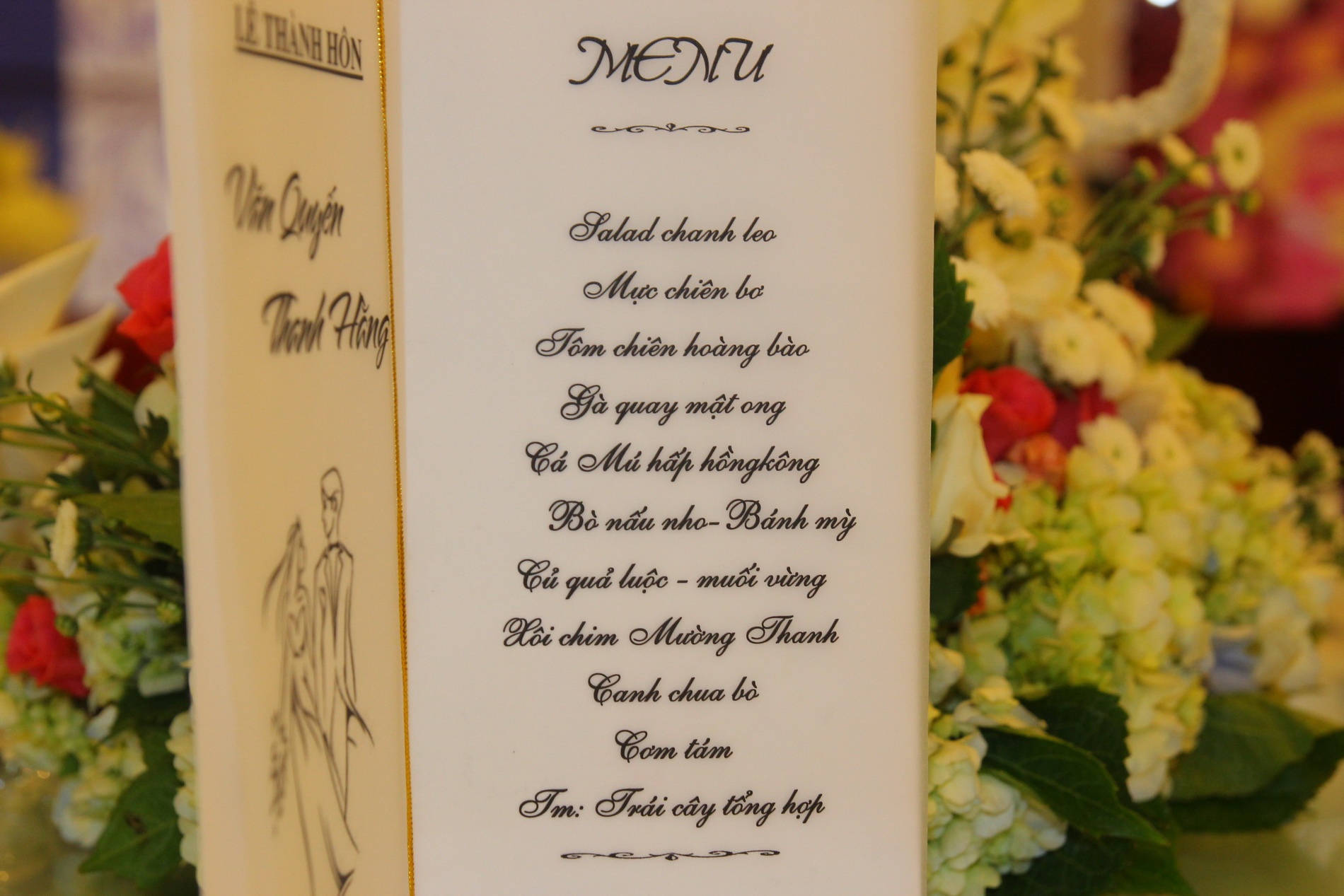Thực đơn đám cưới của Văn Quyến - Thanh Hằng.