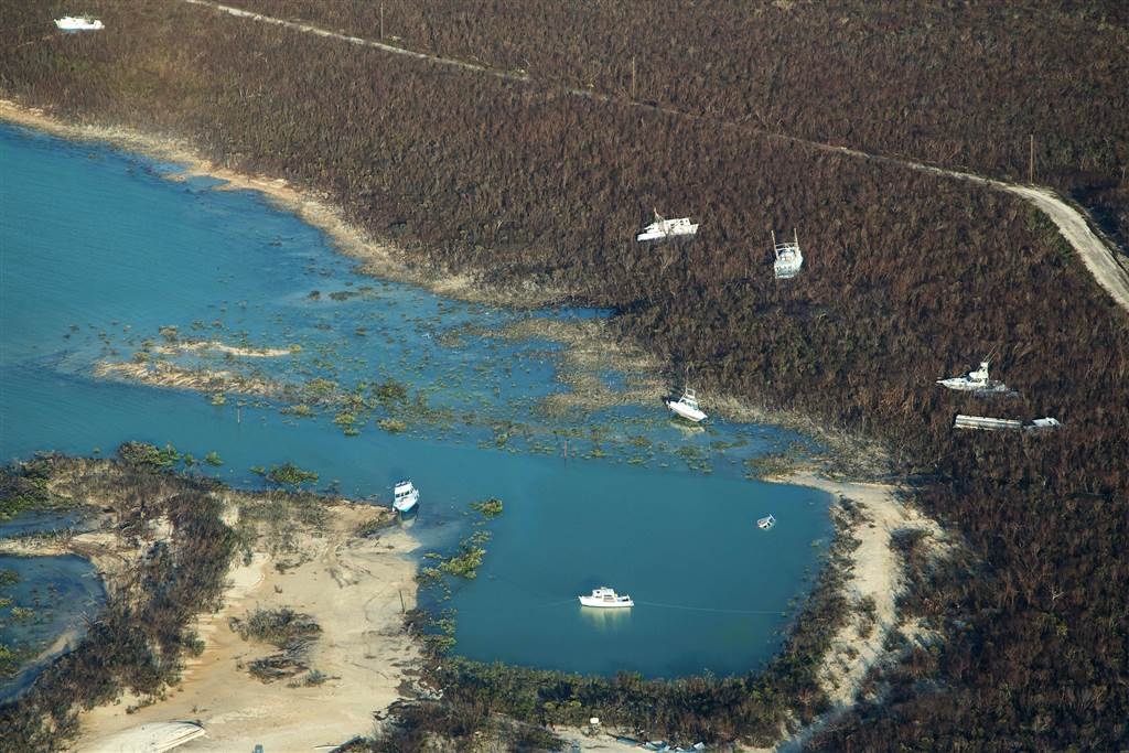 Tàu thuyền bị bão Joaquin đánh lên đảo Long, Bahamas hôm 5/10. Cơn bão gây thiệt hại nặng nề ở Bahamas và đánh chìm một tàu chở hàng của Mỹ trên biển. Ảnh: AP |