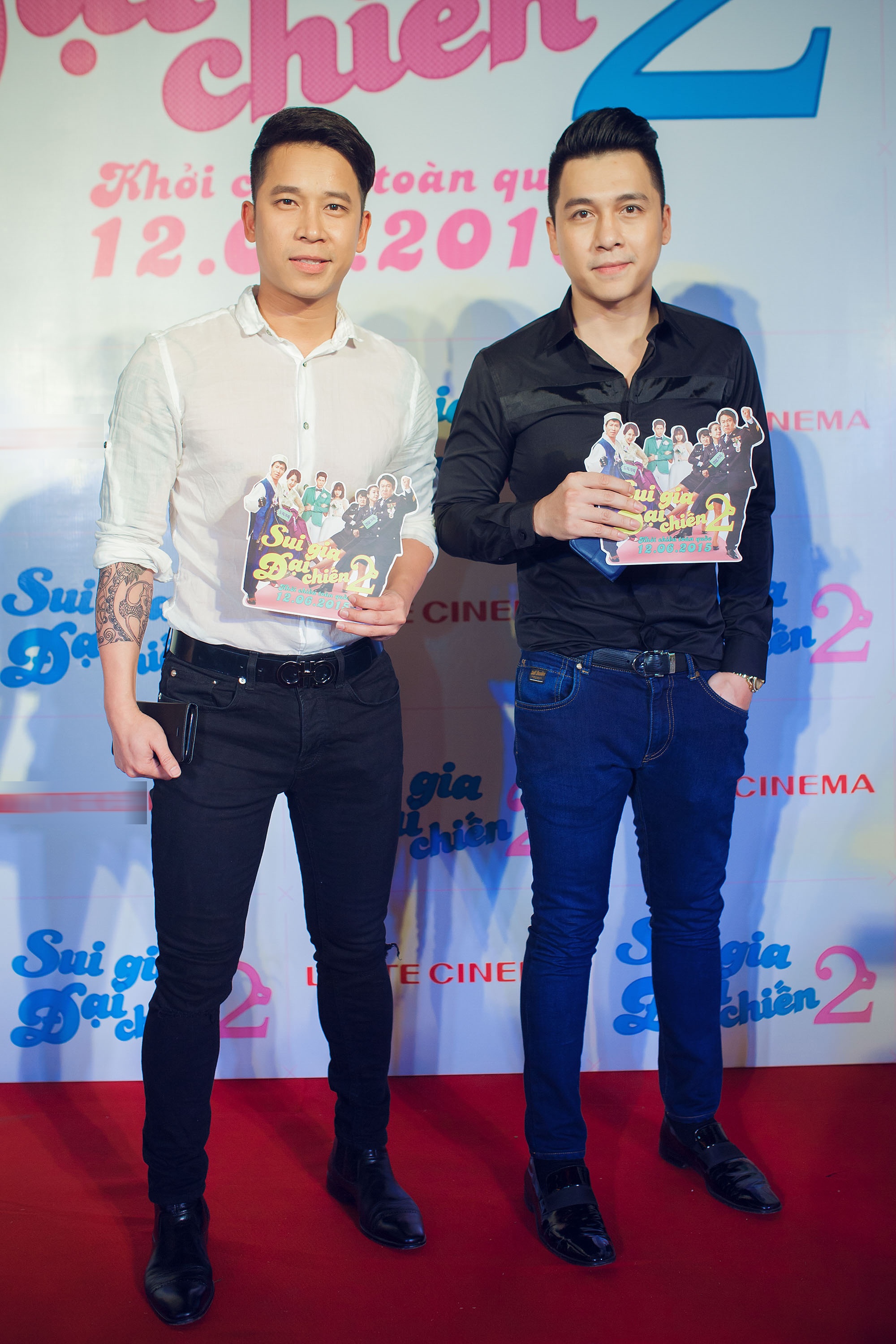 Tham dự buổi ra mắt phim "Sui gia đại chiến 2" ở TP HCM, nam ca sĩ cùng Tiến Dũng thu hút sự chú ý bởi vẻ điển trai với trang phục thanh lịch, giản dị.