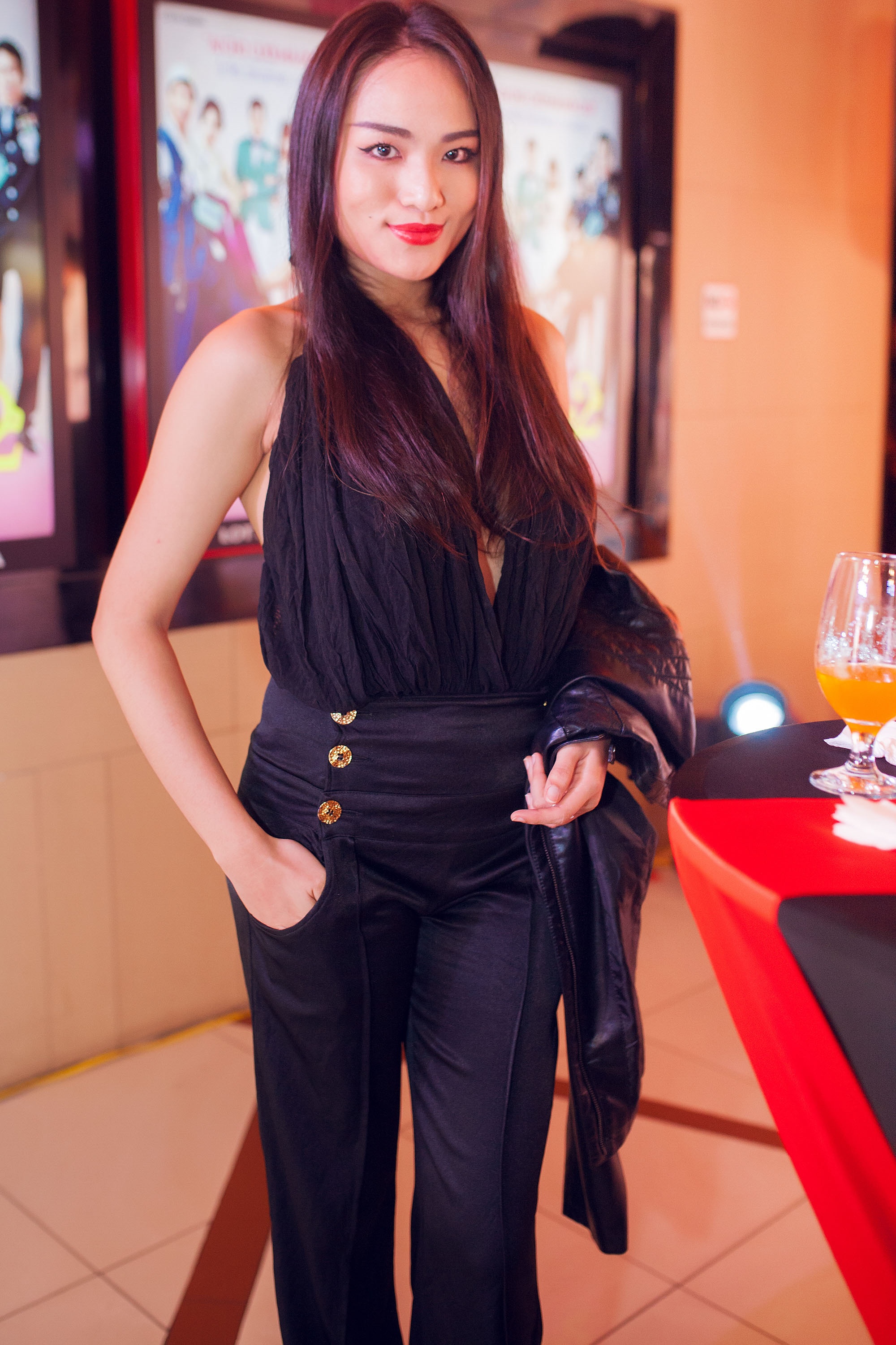 Buổi ra mắt phim tối 9/6 còn có sự góp mặt của nhiều nghệ sĩ. Ca sĩ kiêm VJ Sĩ Thanh gây chú ý với gương mặt trẻ trung, xinh đẹp và trang phục crop-top khoe eo, chân thon.
