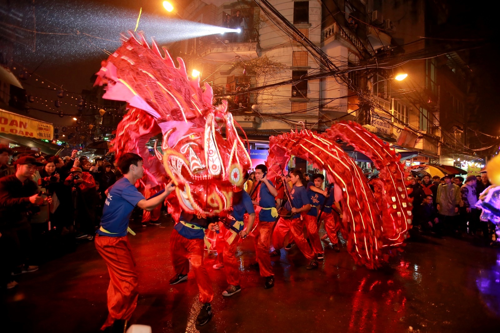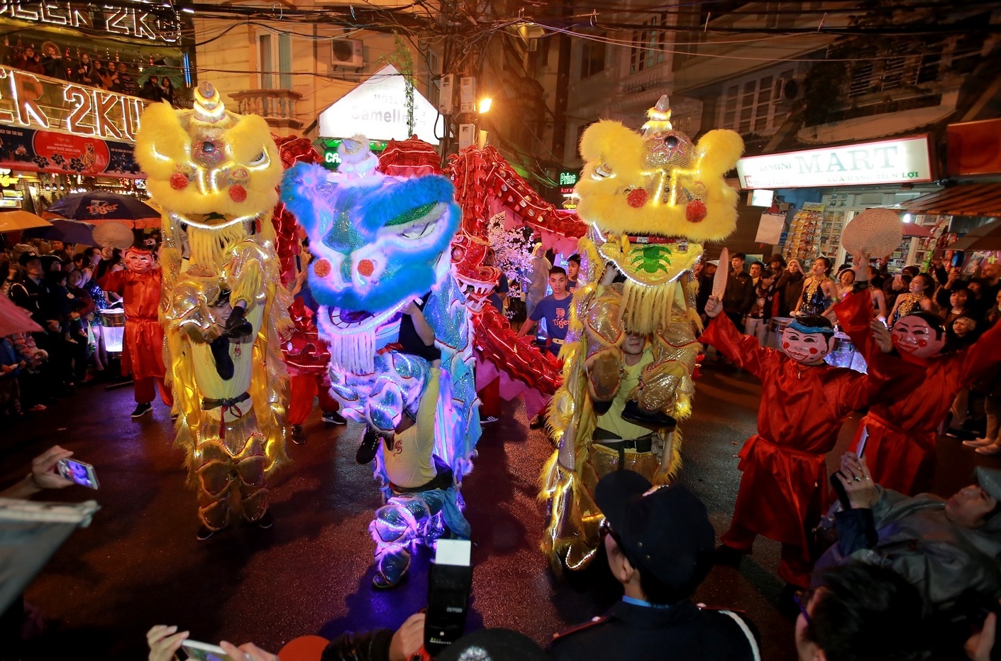 | Mở đầu đêm hội là màn múa lân của các nghệ sĩ. Dù trời giá rét nhưng nhiều khán giả vẫn nán lại, bày tỏ sự yêu thích, ủng hộ chương trình. |