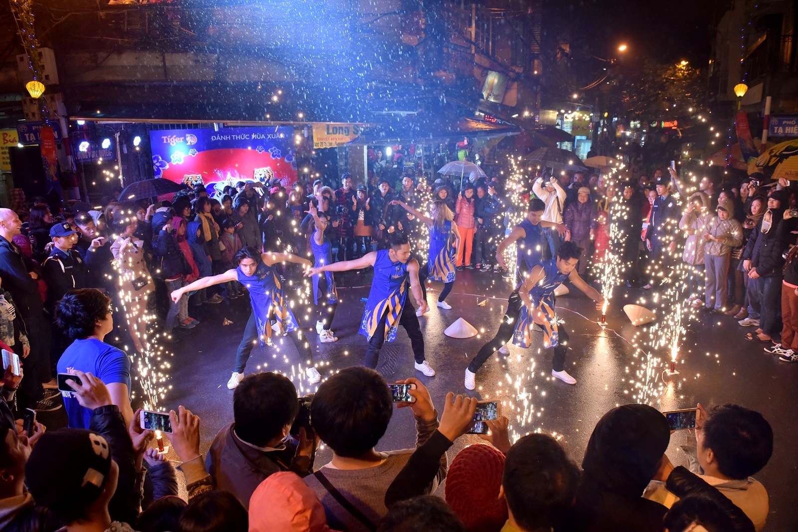 Các vũ công cháy hết mình trong màn biểu diễn, bất chấp cái lạnh đêm đông. |