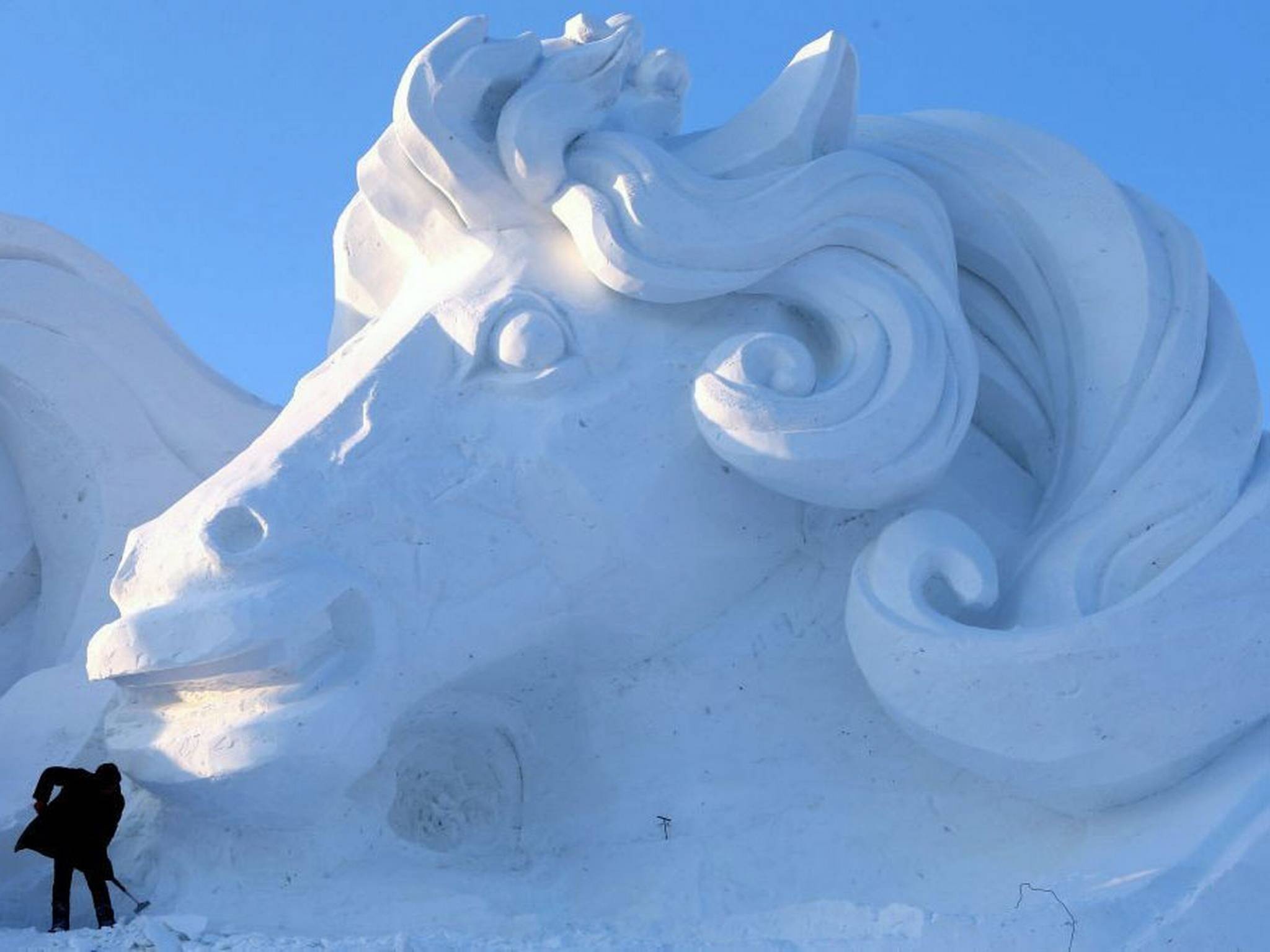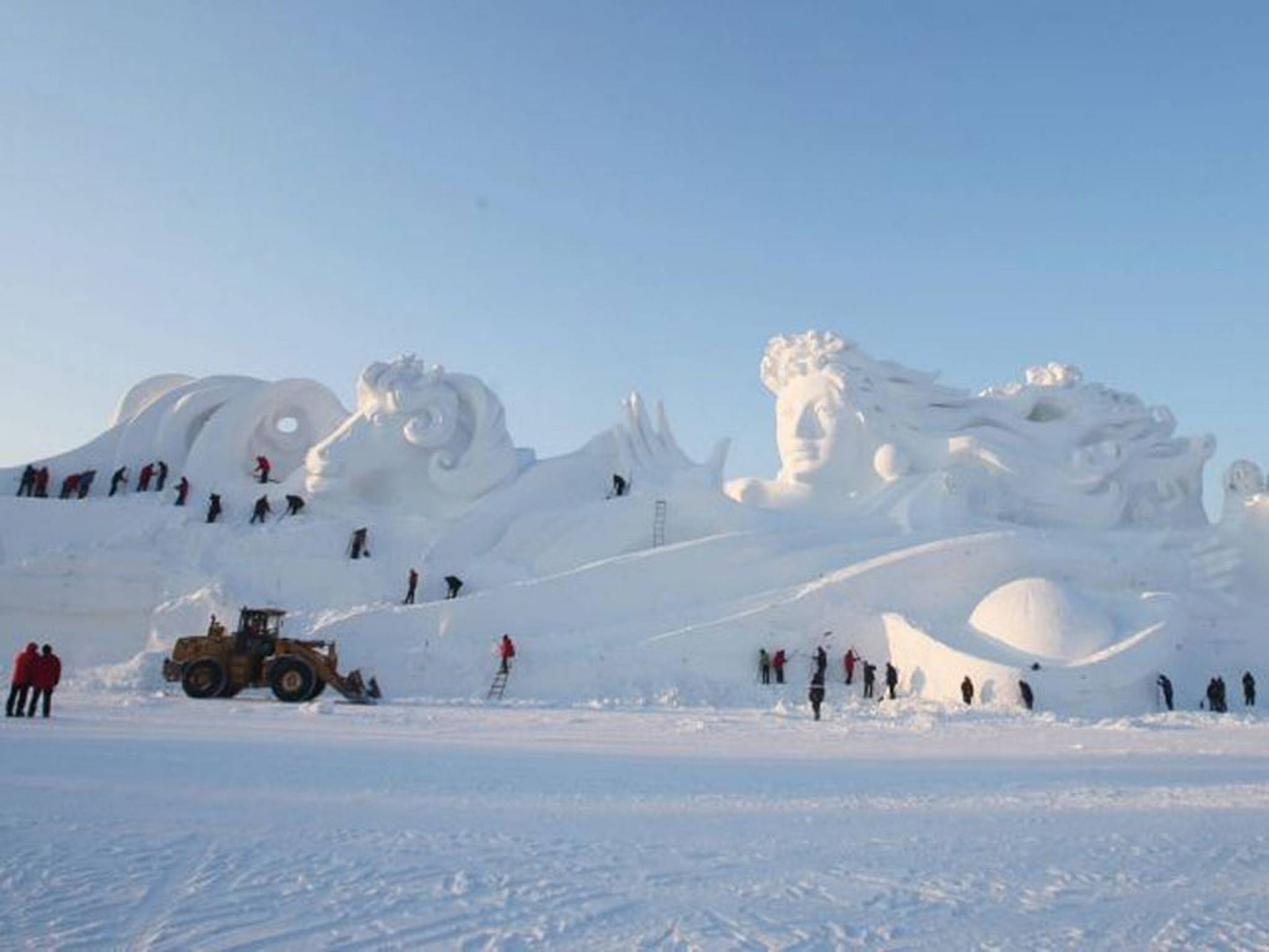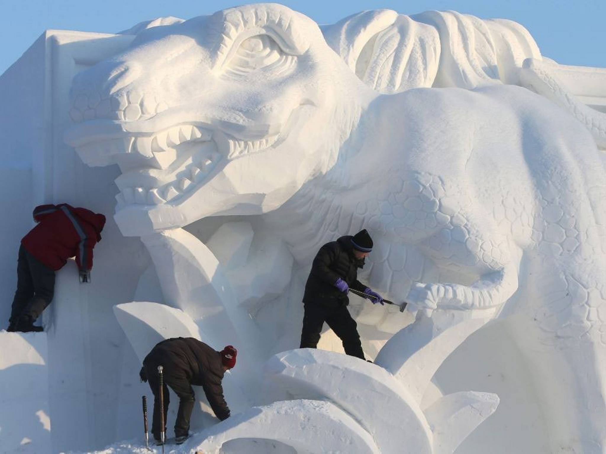 Những tác phẩm điêu khắc lớn nằm san sát khắp công viên Sun Island. Kích thước rất lớn là đặc điểm chung của những tác phẩm tham gia lễ hội băng năm nay. Bức tượng trong ảnh có chiều dài 117 m, chiều cao 26 m. Ảnh: EPA.