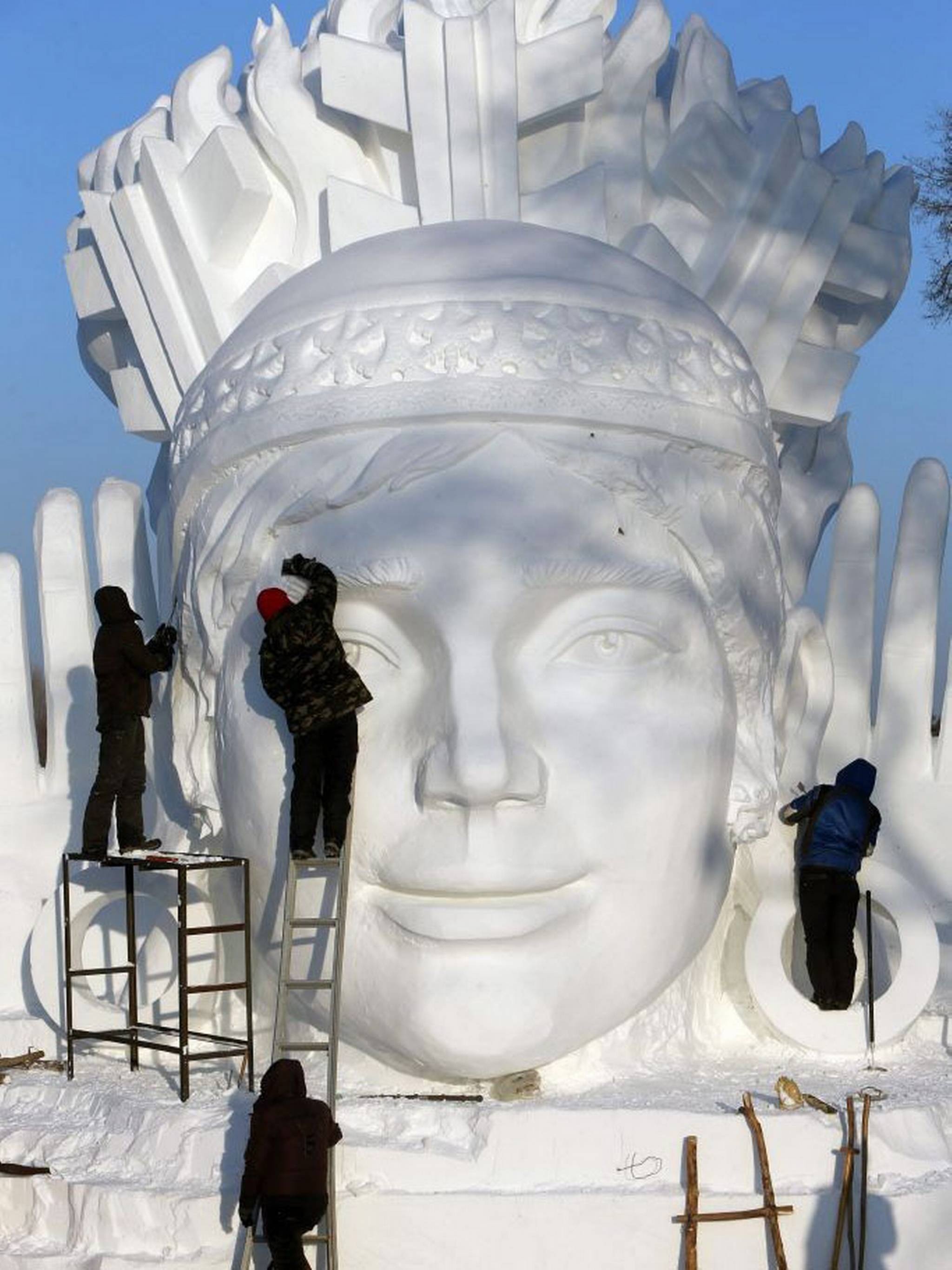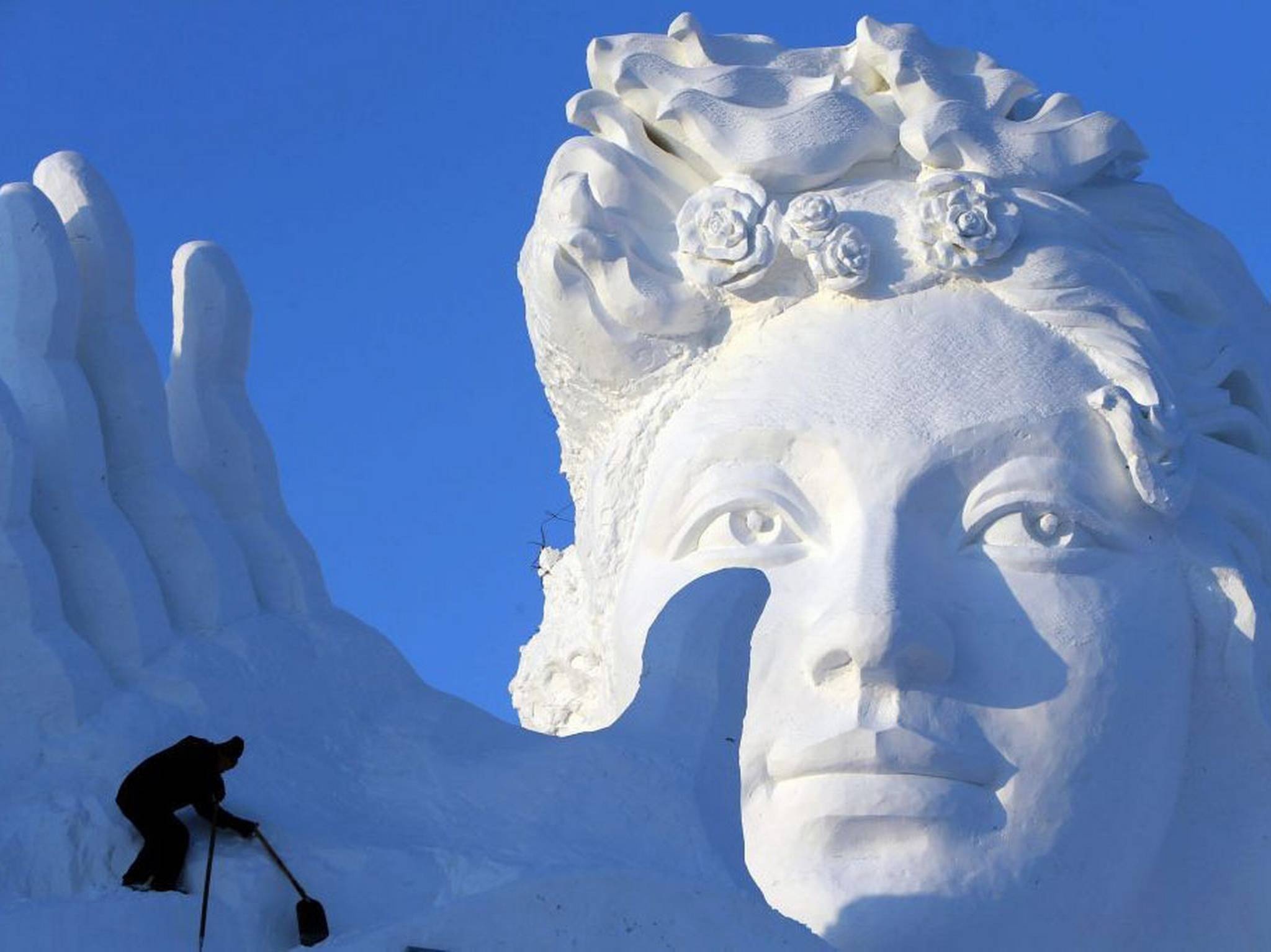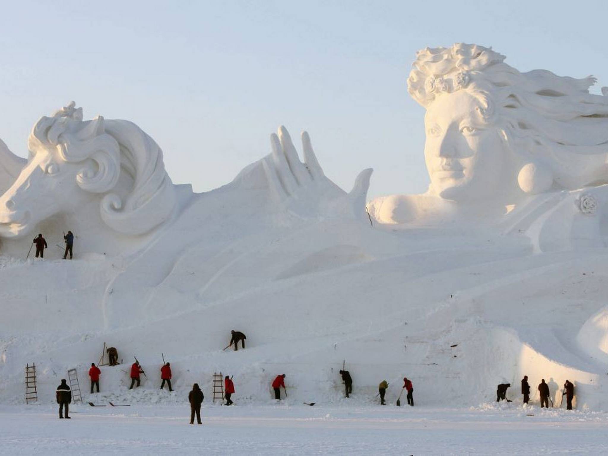 Những tác phẩm điêu khắc lớn nằm san sát khắp công viên Sun Island. Kích thước rất lớn là đặc điểm chung của những tác phẩm tham gia lễ hội băng năm nay. Bức tượng trong ảnh có chiều dài 117 m, chiều cao 26 m. Ảnh: EPA.