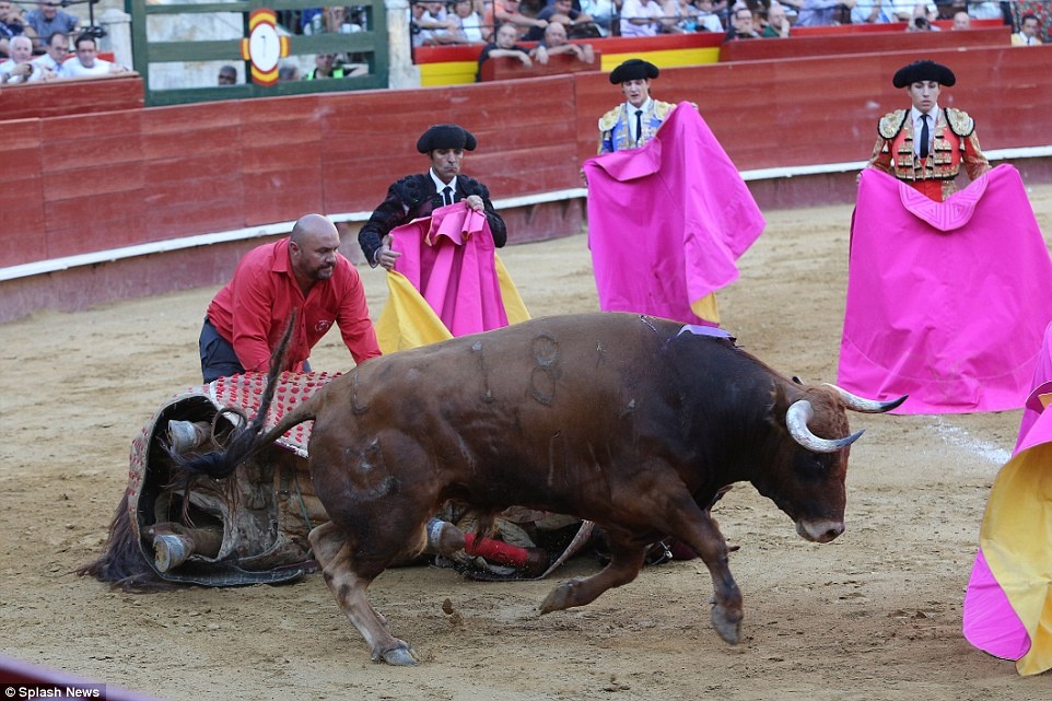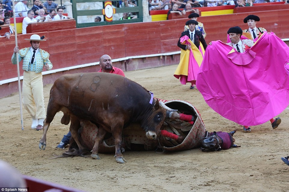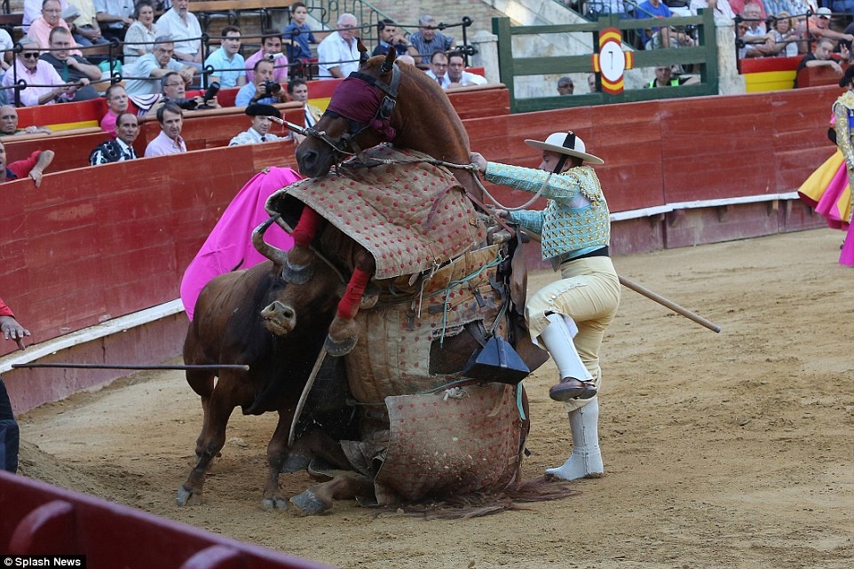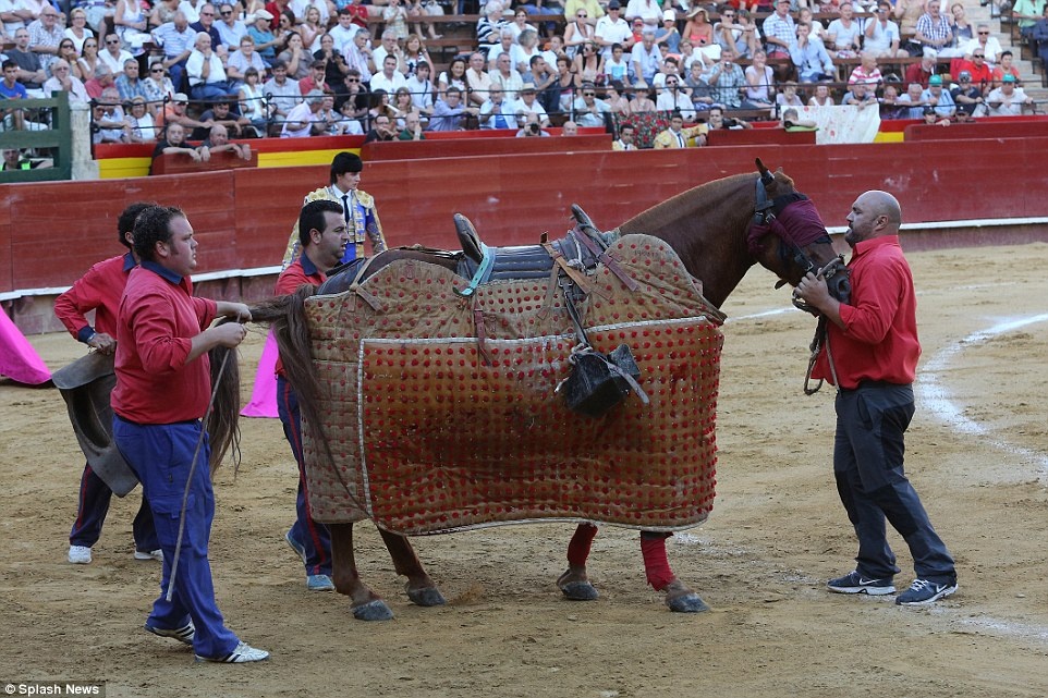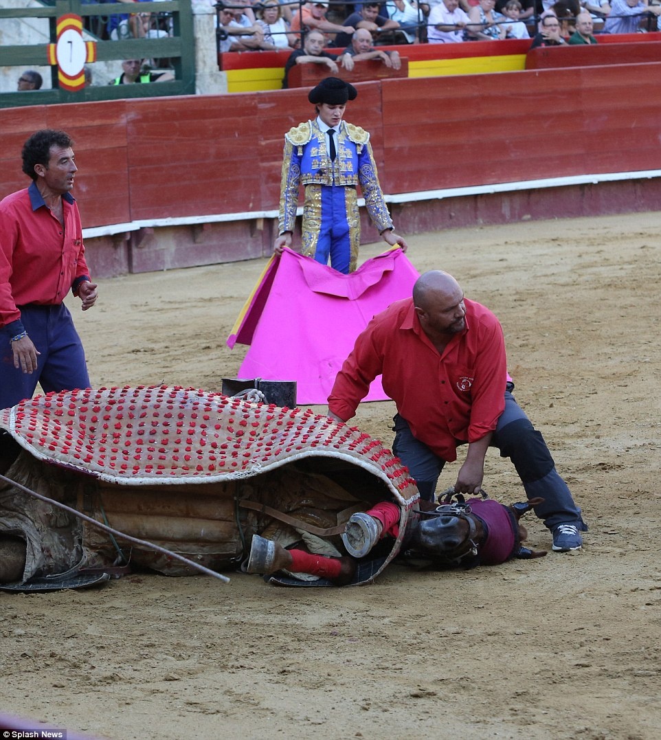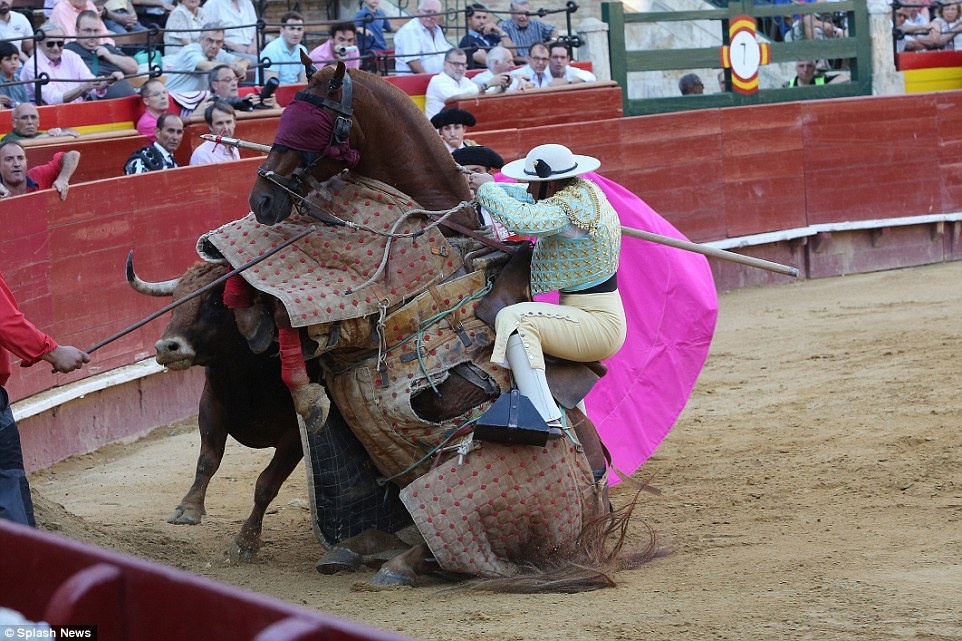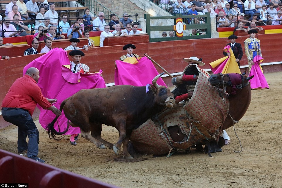 Đợt tấn công thứ 3 của bò tót đã hạ gục ngựa chiến trên đấu trường. |