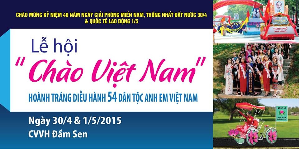 Tiếp tục nhân rộng không khí rộn ràng chào mừng ngày đại lễ 30/4, vào lúc 10h và 17h các ngày 30/4 và 1/5, ngay tại Đầm Sen, một lần nữa du khách có thể chiêm ngưỡng hình ảnh đất nước Việt Nam tươi đẹp sau giải phóng qua chương trình diễu hành Chào Việt Nam. Chương trình có những màn trình diễn sinh động, hoành tráng, màu sắc của 54 dân tộc anh em. Du khách sẽ gặp lại những hình ảnh quen thuộc như xe xích lô, xe hoa và hòa mình theo các điệu múa, những ca khúc kết nối hàng triệu trái tim Việt Nam ở 3 miền Bắc, Trung, Nam.