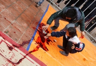 "Ông Ỉ" nặng 152kg được sơn phẩm màu đỏ sẽ được tế bằng đao to do 2 người thủ đao 47 tuổi được chọn lựa trong làng.