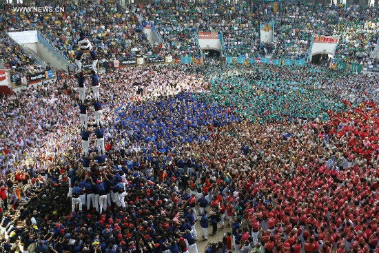 | Lễ hội xây tháp người, hay còn gọi là Castells, xuất hiện ở xứ Catalan từ 200 năm trước. Mỗi "lâu đài" hình thành bởi một nhóm từ 75 đến 500 người. Những thành viên trẻ và nhẹ sẽ ở phần trên cùng của tháp, trong khi các thành viên nặng đứng trụ ở dưới. |