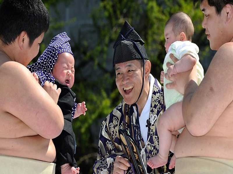 Người dân Nhật Bản tin rằng một đứa trẻ khóc to trong lễ hội Sumo dọa trẻ con sẽ khỏe mạnh, tự tin và lớn nhanh hơn những trẻ không khóc.