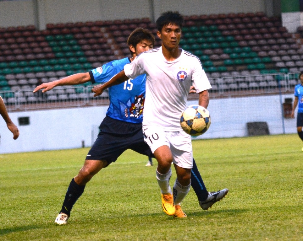 | SHB.Đà Nẵng (áo trắng) chơi tốt hơn hẳn so với Yokohama FC. Ảnh: Hoàng Tâm |