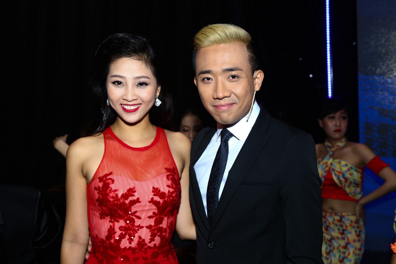 Liêu Hà Trinh lần đầu cầm trịch ở sân chơi lớn nên còn khá bỡ ngỡ. Nữ ca sĩ không quên học hỏi thêm kinh nghiệm của Trấn Thành. |
