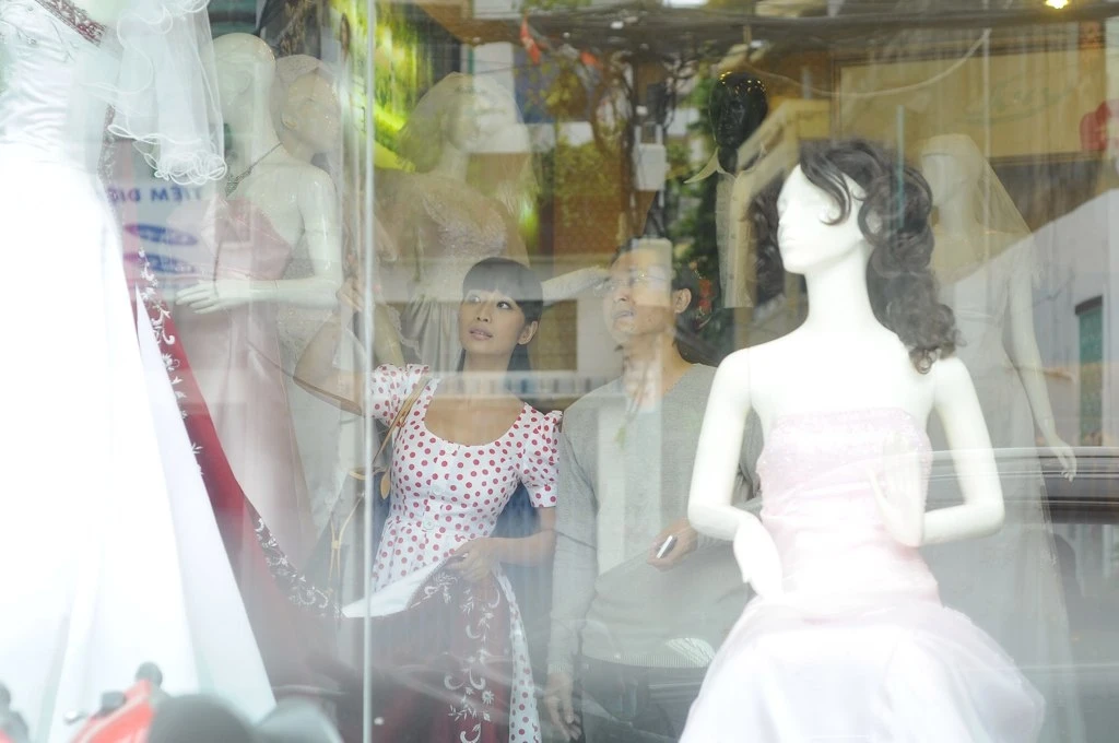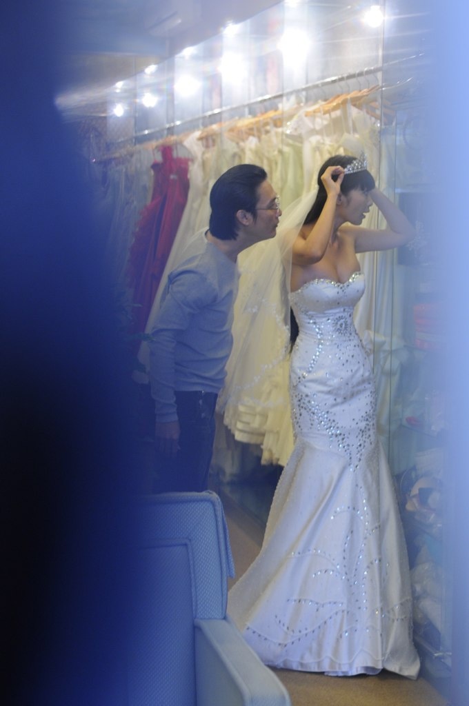 Người đẹp "Sợi xích" vừa bị phát hiện tay trong tay đi chọn đầm cưới cùng mối tình 10 năm - nhạc sĩ Nguyễn Nhất Huy tại một showroom ở TP.HCM.