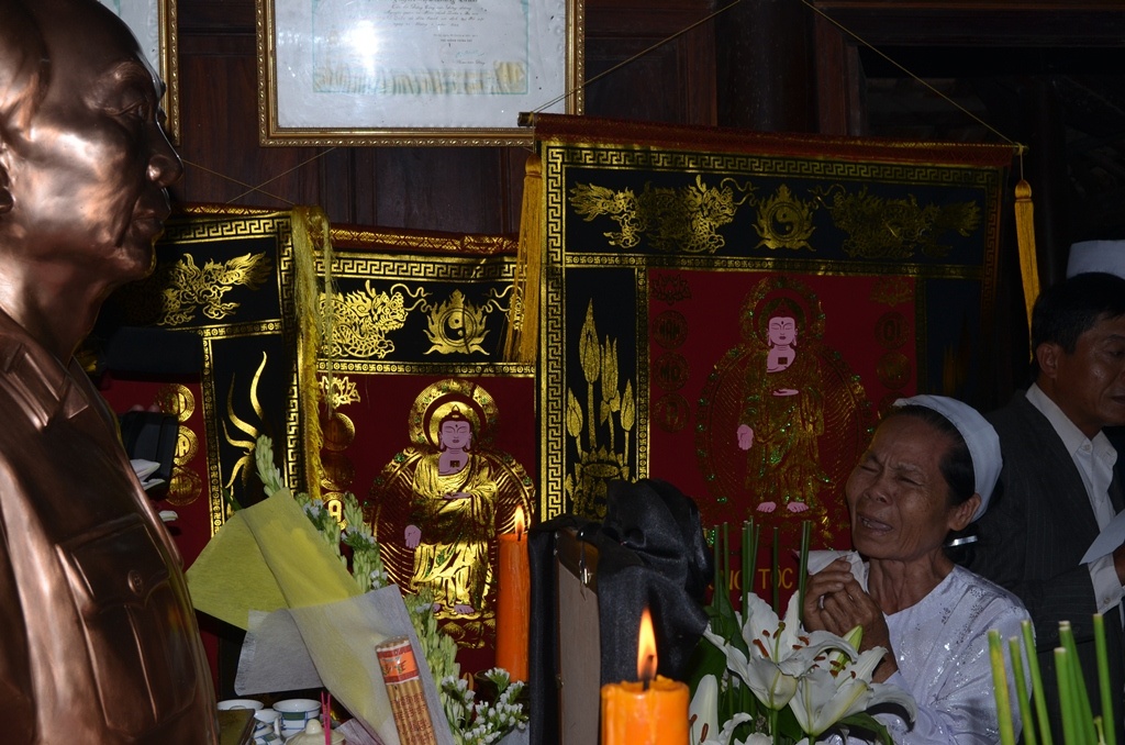 | Nhiều con cháu của Đại tướng đã khóc ngất khi chít vành khăn tang trắng lên đầu. |