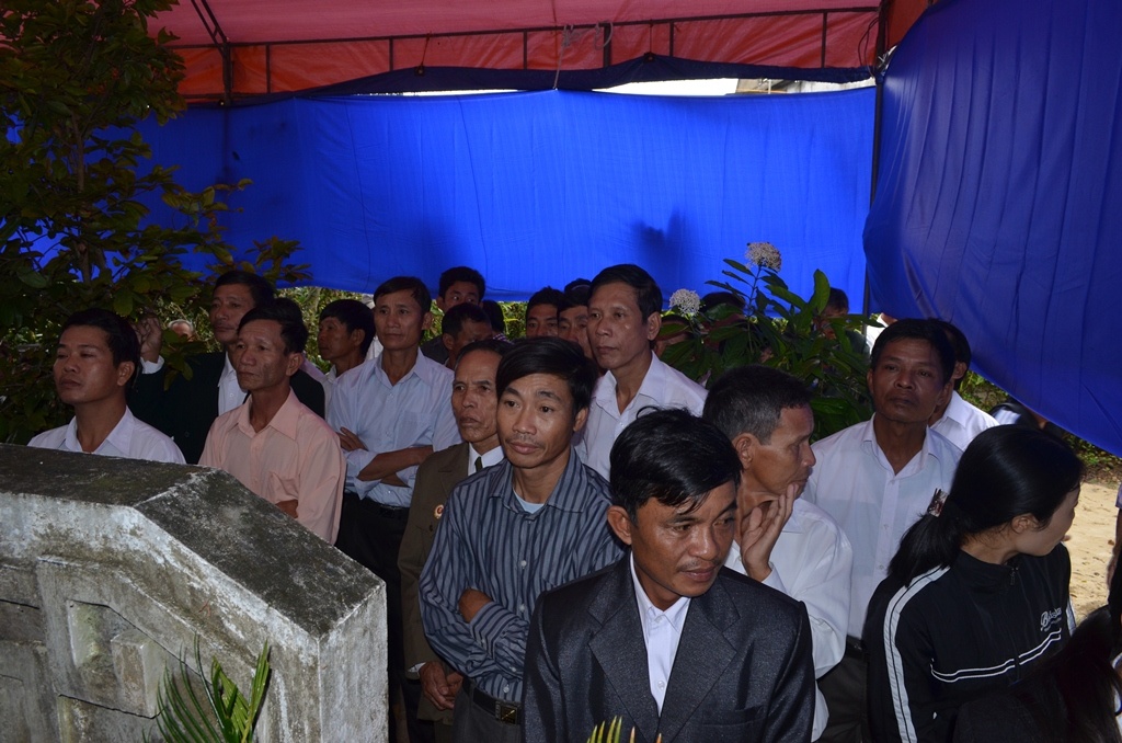 | Người nhà cho biết có khoảng 60 người bịt khăn chịu tang Đại tướng ở quê hương Quảng Bình. |