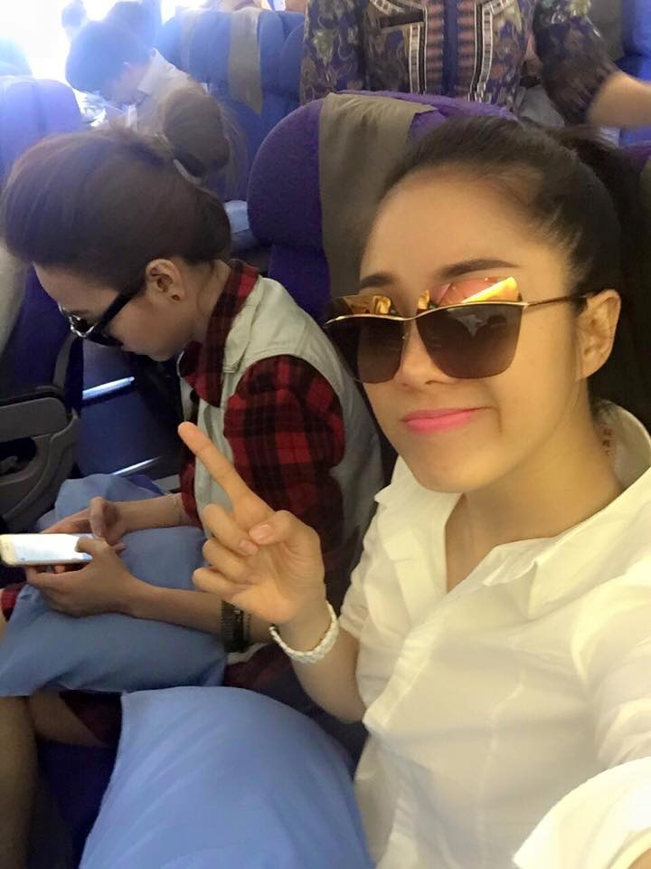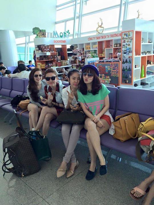 | Sáng 6/2, Ngân Khánh và ông xã cùng những người bạn của cả hai có mặt tại sân bay quốc tế Tân Sơn Nhất để khởi hành. Tuy nhiên, nếu Ngân Khánh đi Singapore thì ông xã Đỗ Thiếu Quân và bạn bè doanh nhân đều diện đồng phục màu cam sang Hong Kong. |