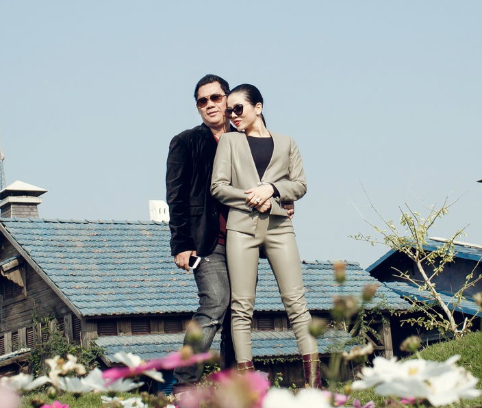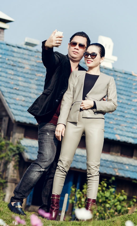 | Hộ tống cô tham dự sự kiện lần này và ông xã. Cặp đôi vui vẻ chụp ảnh selfie tại khu du lịch, giải trí và phim trường mới khai trương. |