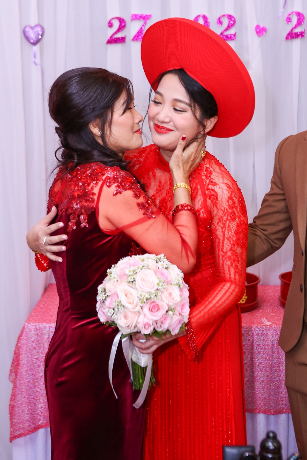 Cô dâu vòng tay ôm mẹ chồng thay lời cảm ơn. Giang Quốc Cơ thổ lộ, khi anh thưa chuyện với bố mẹ và xin ông bà sang thưa chuyện với người lớn phía cô dâu, cả 2 đã bất ngờ trước quyết định vội vàng. Nhưng vì con trai muốn ổn định gia đình nên bố mẹ cũng chiều lòng anh.