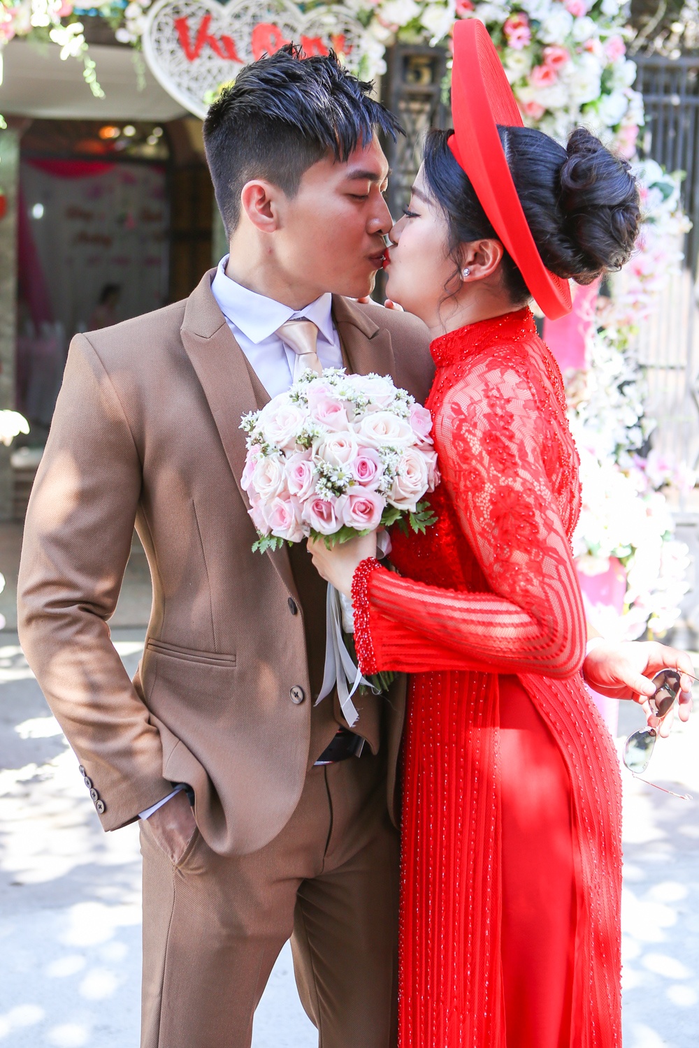 Trong khoảnh khắc hạnh phúc, Giang Quốc Cơ liên tục hôn vợ khiến cô ngượng ngùng trước quan khách.