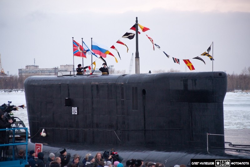 | Bộ trưởng Sergei Shoigu chúc mừng các thủy thủ làm nhiệm vụ trên chiếc tàu ngầm tối tân và các đơn vị liên quan trong quá trình đóng tàu. Ông mong muốn rằng chiếc tàu ngầm sẽ phát huy tối đa sức mạnh của nó trên biển. Ảnh:tuku.military.china |