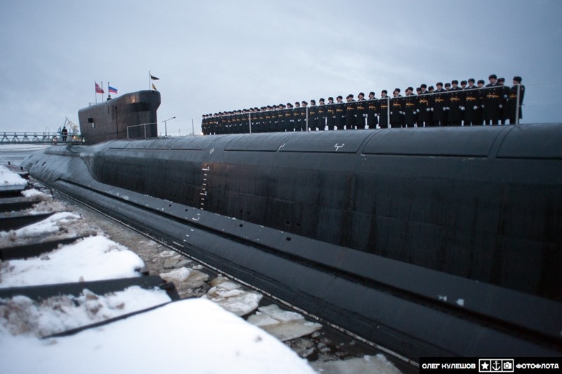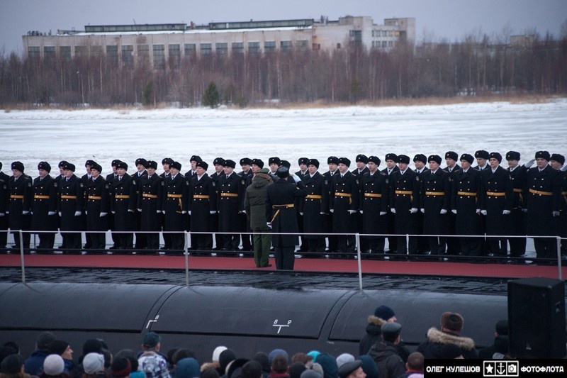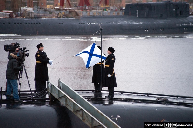 | Ngày 24/12, lễ thượng cờ tàu ngầm hạt nhân chiến lược Alexander Nevsky (K-550) lớp Borei diễn ra một cách long trọng theo nghi thức cao nhất của hải quân Nga. Ảnh: Tuku.military.china |