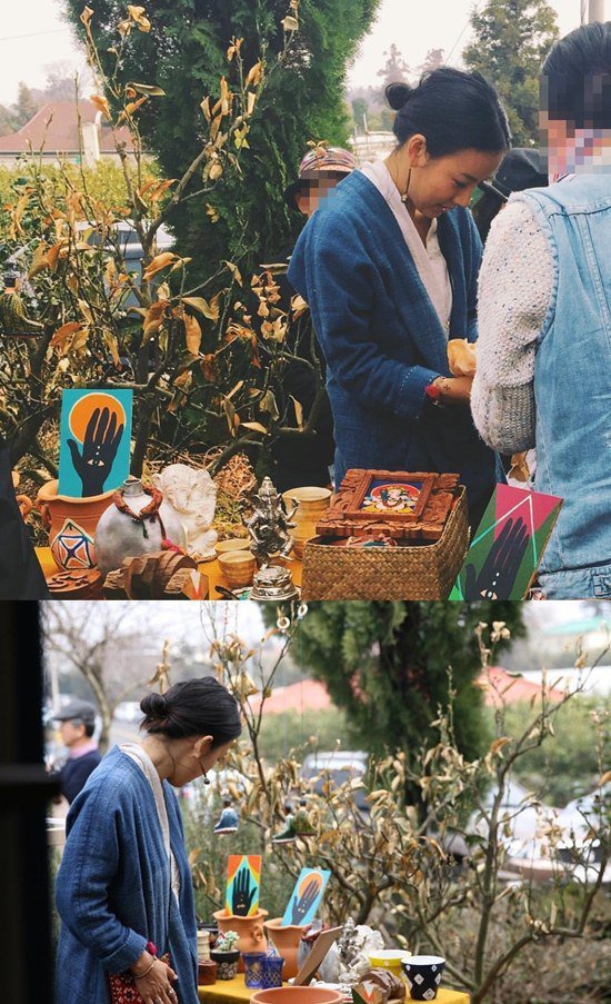 Hôm 7/3, một fan đăng tải bức ảnh nữ ca sĩ Lee Hyori có mặt tại một phiên chợ trời ở đảo Jeju. Tại đây, Lee Hyori tham gia với tư cách người bán các mặt hàng gồm tranh vẽ, tô bát, đĩa tự làm. Trong ảnh nữ ca sĩ mặc áo cardigan xanh kín đáo, đang nói chuyện với khách hàng.