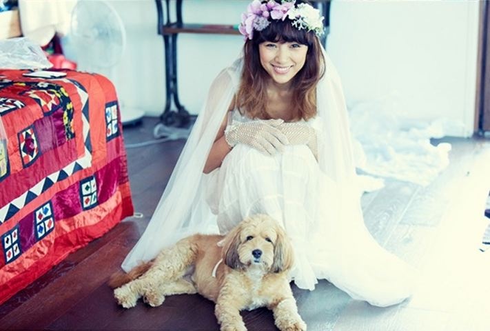 | Lee Hyori có tình yêu đặc biệt với những chú cún và mèo. Những người bạn 4 chân này xuất hiện trong cả album ảnh cưới của cô. |