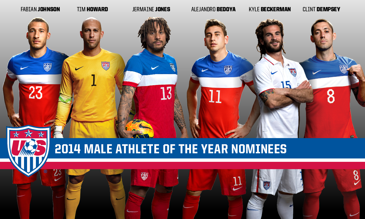 Trang chủ Liên đoàn bóng đá Mỹ (USSoccer.com) vừa công bố danh sách 6 ứng viên cho danh hiệu Cầu thủ xuất sắc nhất nước Mỹ 2014. Những ngôi sao vinh dự được nêu tên gồm thủ môn Tim Howard, các tiền vệ Kyle Beckerman, Alejandro Bedoya, Fabian Johnson, Jermaine Jones và tiền đạo Clint Dempsey.