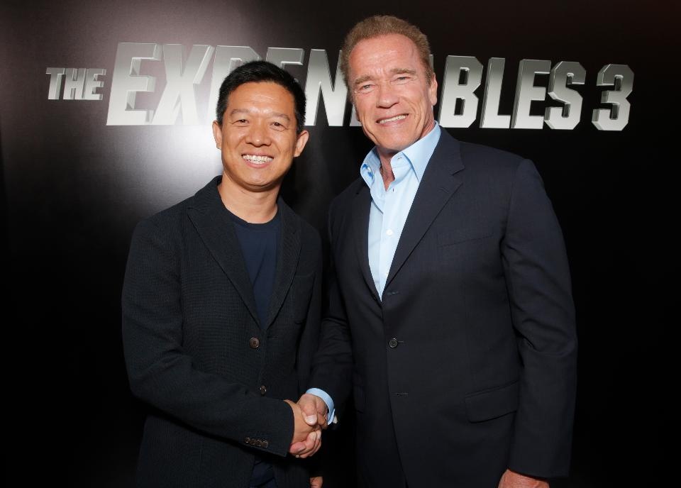 | Jia Yueting và tài tử điện ảnh Arnold Schwarzenegger tại lễ ra mắt bộ phim "The Expendables 3". |