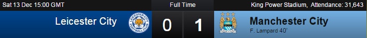 40': Từ pha đi bóng tốc độ và căng ngang thuận lợi của Nasri, Lampard khéo léo dứt điểm một chạm tung lưới Leicester. Sự tỏa sáng của những ngôi sao chính là điều khác biệt giúp đội khách vượt lên dẫn bàn.