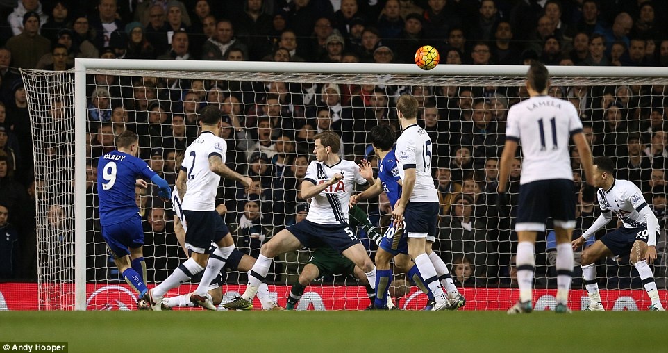 Vardy tung ra cú dứt điểm nguy hiểm, nhưng chưa đủ chính xác để đưa bóng vào lưới thủ môn Hugo Lloris.