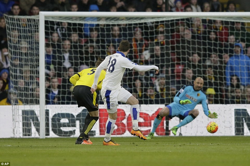 Sau giờ nghỉ, đội khách Leicester được đền đáp xứng đáng khi Mahrez xử lý bóng gọn gàng và dứt điểm chân trái căng vào góc cao khung thành Watford ở phút 56. |