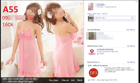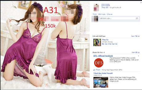 Thành viên có nick Vuhale88dn chia sẻ trên một diễn đàn: "Mình đang lướt qua mạng xã hội thì tình có một cô bé (nhìn cũng xinh xinh) đăng tấm ảnh có em mang váy ngủ rất nuột 3 vòng em thấy là rất chuẩn, như chang như mẫu chứ chả chơi, có kèm theo một cái ghi chú 140.000 đồng, liên hệ 0905 XXX XXX .