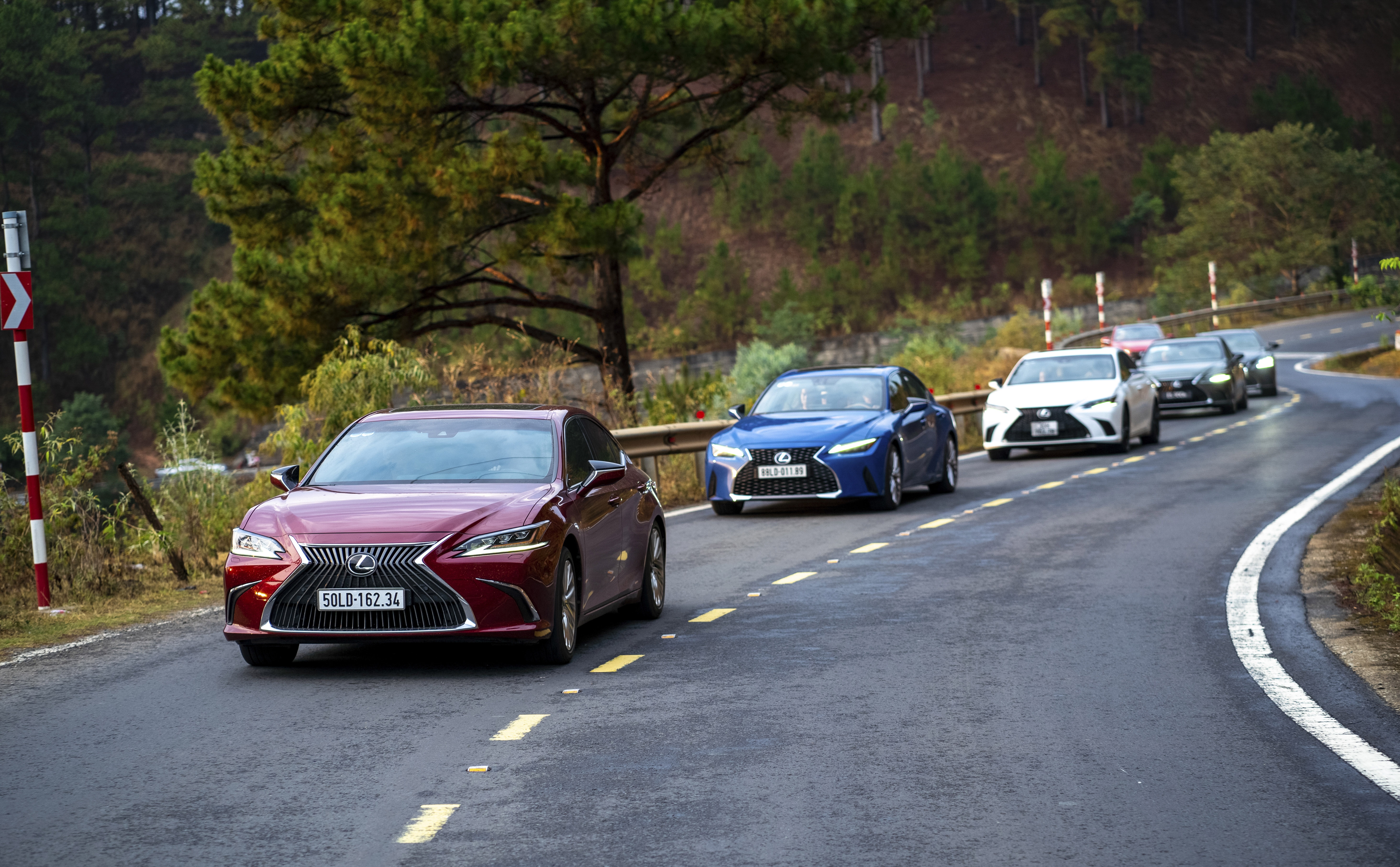 Cung đường đầu tiên của chuyến hành trình xuất phát từ phố núi Buôn Mê chạy dọc đèo núi quanh co để đến xứ sở mù sương Đà Lạt. Ở chặng đường này, dòng xe được người lái thể nghiệm là Lexus ES250 F Sport - mẫu sedan hạng sang có giá hơn 2,7 tỷ đồng.