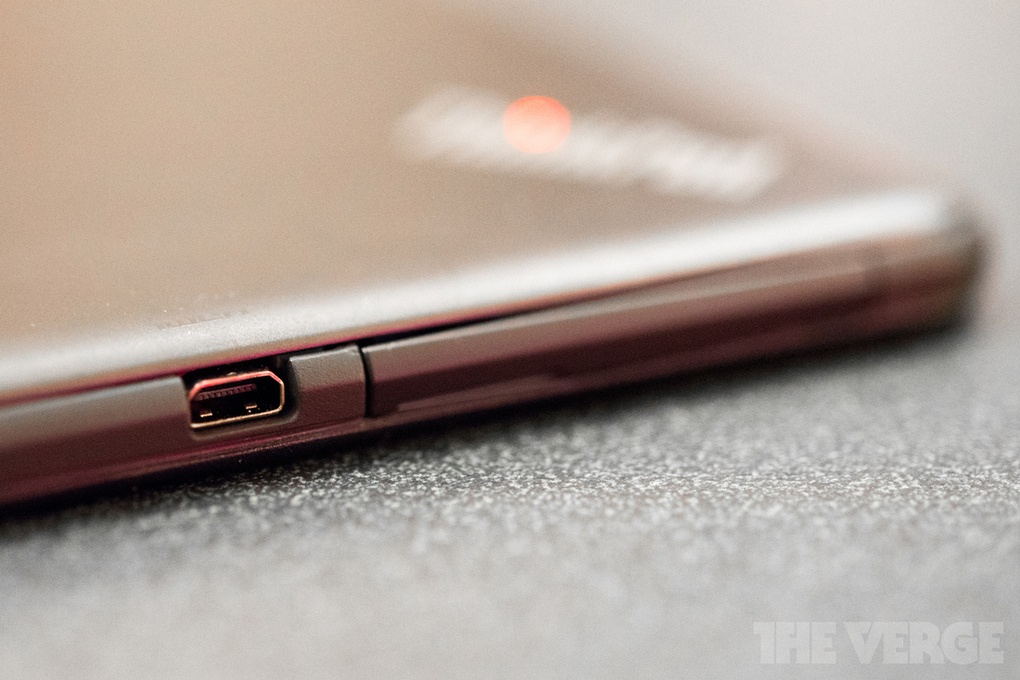 | Sự khác biệt lớn nhất giữa ThinkPad 8 với các thiết bị trước đây của Lenovo chính là được trang bị cổng kết nối micro HDMI. Người dùng có thể kết nối với một màn hình lớn hơn thông qua cổng kết nối này. |