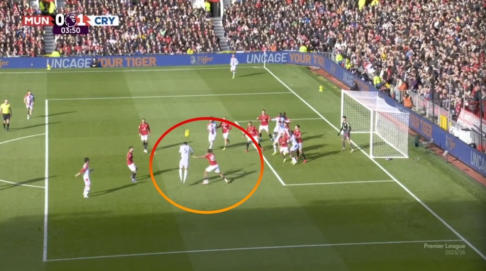 Bàn thua sớm khiến MU gặp nhiều áp lực. Trong phần còn lại của hiệp một, đội chủ nhà chơi thiếu nhịp và không tạo được sự chắc chắn cần thiết. Yoro tiếp tục có những pha xử lý lúng túng, cả khi có bóng lẫn khi phòng ngự. Dalot cũng mắc sai sót trong các tình huống tranh chấp và bọc lót.