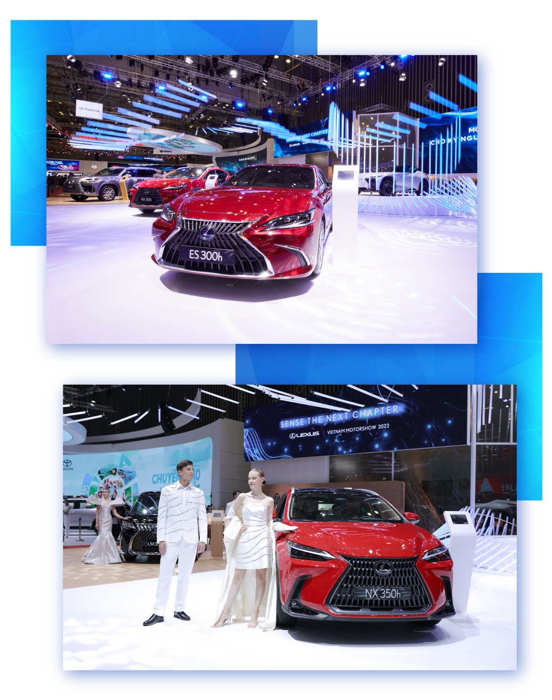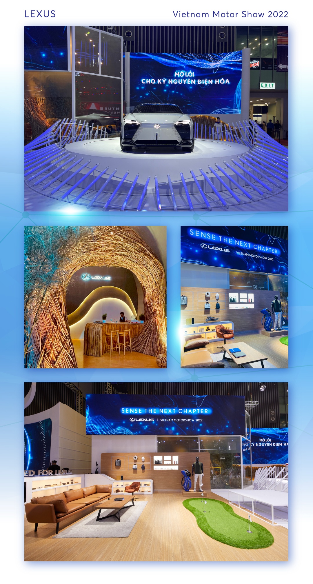 Với chủ đề “Mở lối cho kỷ nguyên điện hóa” cùng dòng chữ “Sense the next chapter”) hiển thị nổi bật tại trung tâm, gian hàng của Lexus như một thông điệp mà hãng muốn truyền tải đến khách tham quan nói riêng và người tiêu dùng nói chung. Từ cách bố trí không gian trưng bày đến những mẫu xe góp mặt, Lexus đều muốn nhấn mạnh vào bước chuyển mình tiếp theo của hãng: Sự kết hợp giữa sang trọng, công nghệ và động cơ “xanh”.