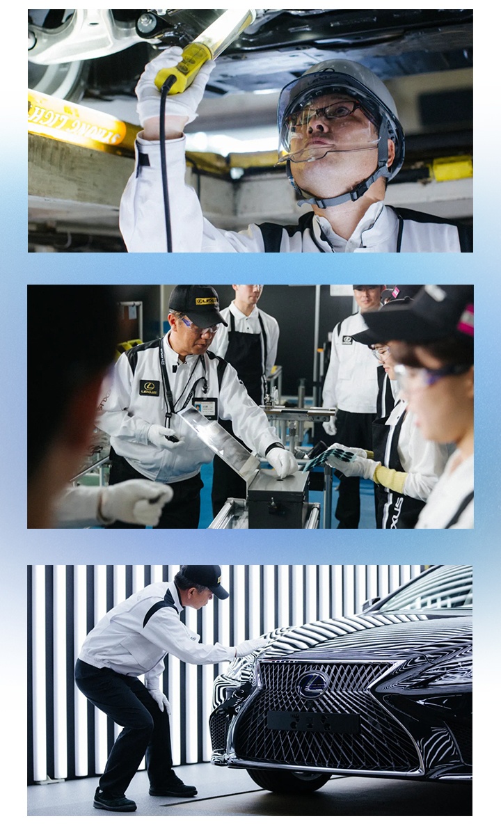 Bên cạnh đó, “Takumi” đại diện cho sự khéo léo của các nghệ nhân tạo nên những chiếc xe Lexus. Một người Nhật mất trung bình 60.000 giờ để trở thành takumi. Trong 60.000 giờ đó, họ sẽ lặp đi lặp lại công việc của mình để thành thạo và trau dồi kỹ năng đến cấp độ cao nhất. Dấu ấn những takumi để lại được thể hiện rất rõ qua các chi tiết thủ công tinh xảo trên từng chiếc xe. Sự tỉ mỉ của họ cũng đảm bảo chất lượng đầu ra thành phẩm luôn ở mức cao nhất.