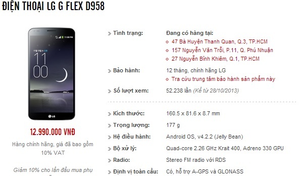 | Một vài đại lý ở TP.HCM chủ động giảm giá LG G Flex để giải phóng hàng tồn. |