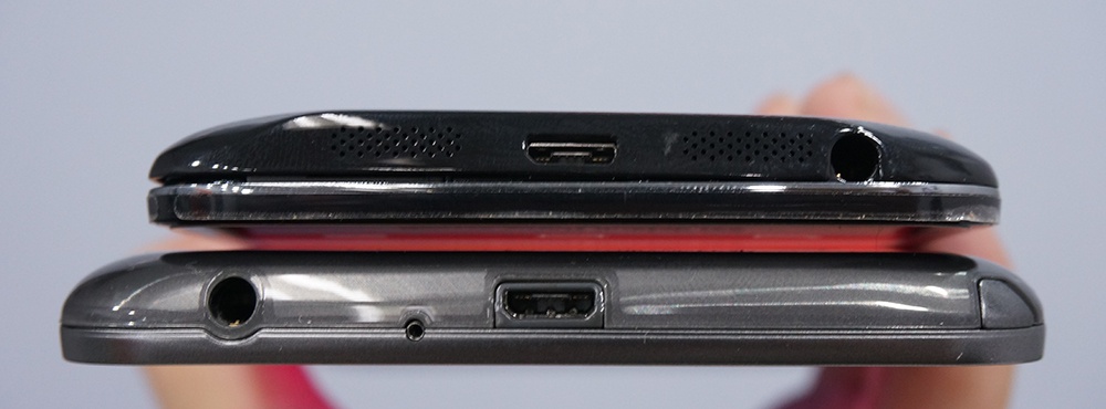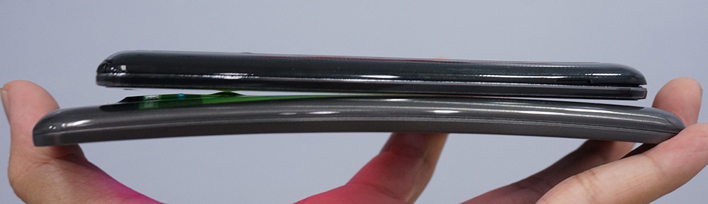 | Độ dày khá tương đương nhau, G-Flex có thêm một chiếc ăng ten ở cạnh dưới. |