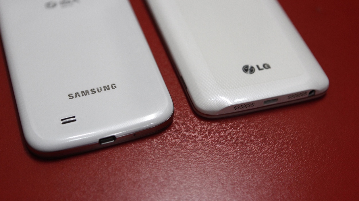 | Hai sản phẩm này có chung vị trí đặt cổng microUSB. Với LG G2, loa ngoài và jack cắm tai nghe của máy được đặt luôn ở cạnh dưới. |