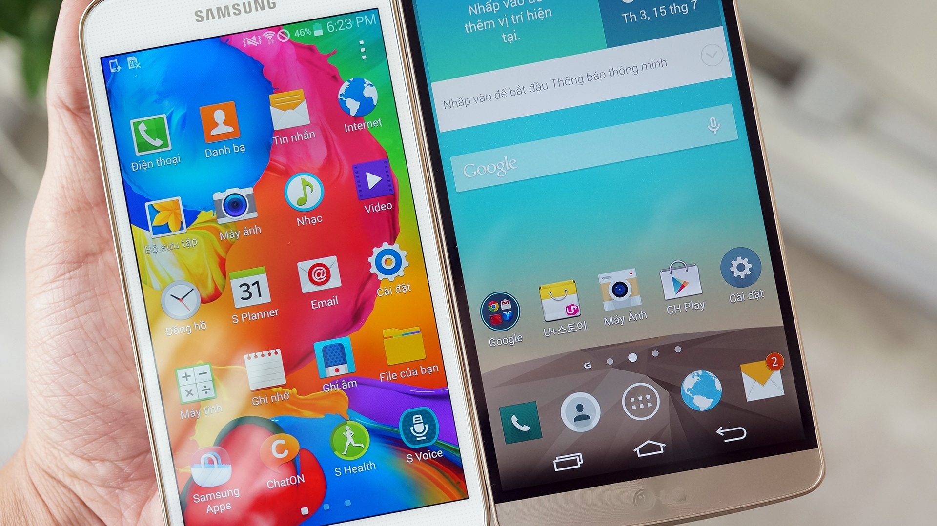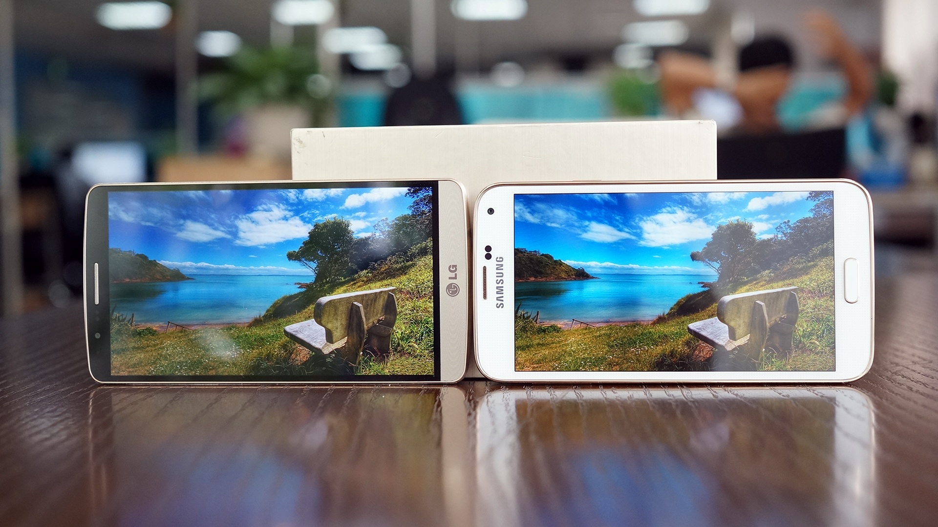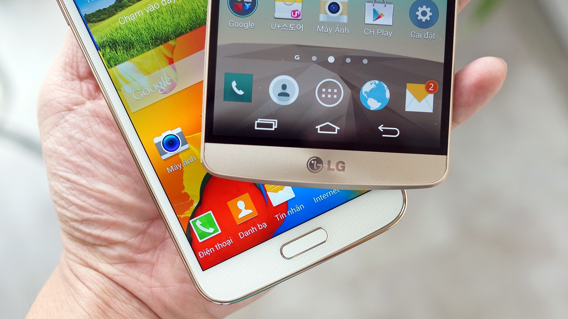 Là hai smartphone màn hình 2K (1.440 x 2.560 pixel) đến từ LG và Samsung, G3 và Galaxy S5 LTE-A khá ngang tài ngang sức khi so kè về khả năng hiển thị.