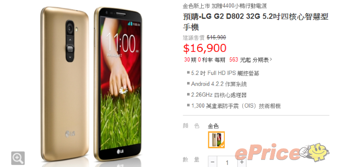 | Phiên bản màu vàng của G2 liệu có tăng doanh số cho LG? Ảnh: Eprice. |