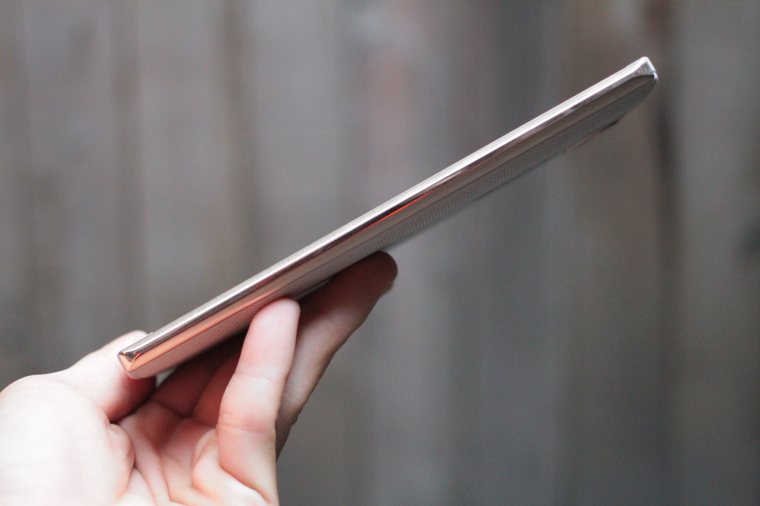 | Cạnh bên là 2 thanh kim loại được ghép vào thân máy, tuy nhiên nó vẫn cho cảm giác liền mạch và thống nhất trong thiết kế. |