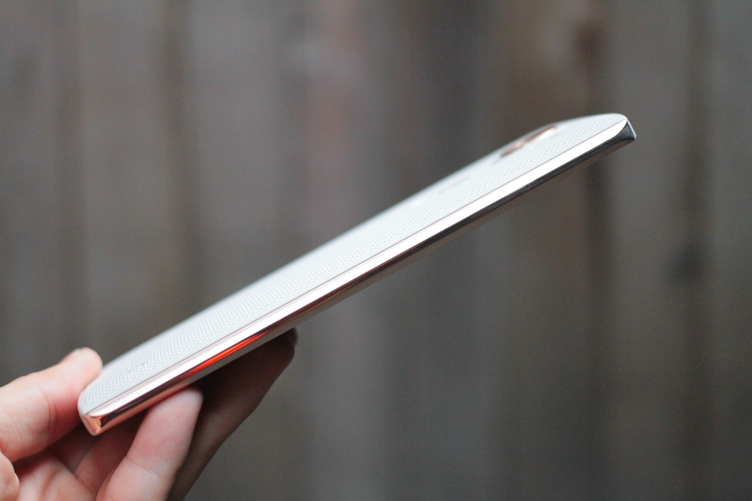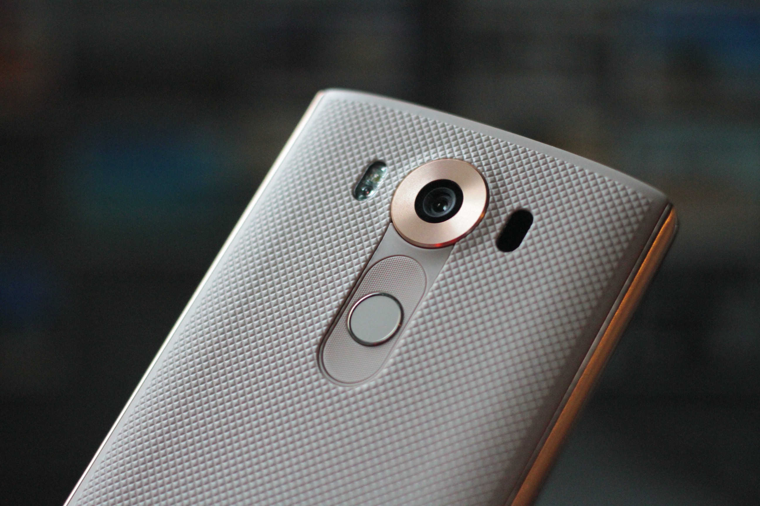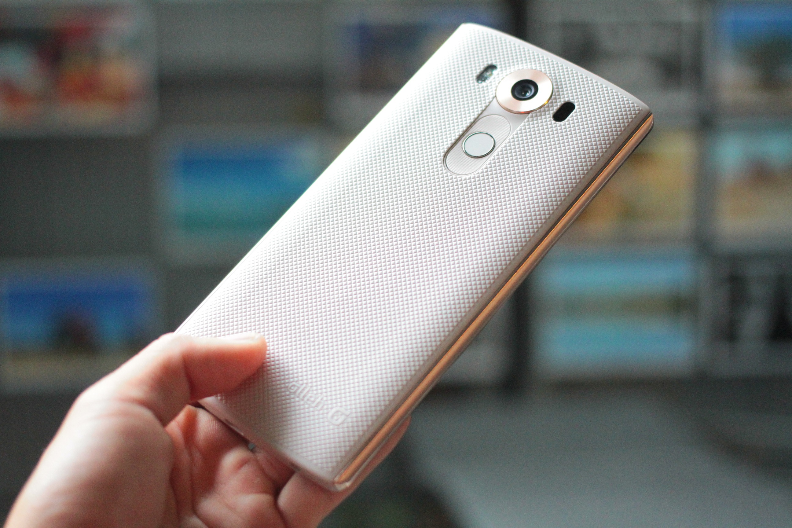 | Tương tự LG G4, V10 cũng được trang bị camera 16 MP, khẩu độ F/1.8. Bên dưới là phím nguồn, nút tăng giảm âm lượng. Cảm biến vân tay trên LG V10 được đặt ngay ở phím nguồn. Ở vị trí này, người dùng sẽ phải dùng ngón trỏ nhiều hơn để mở khóa bằng vân tay. |