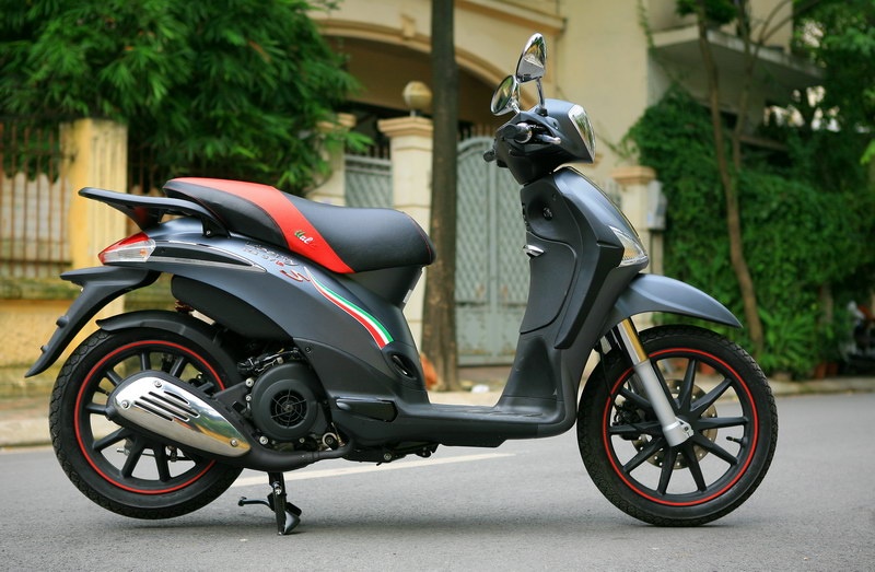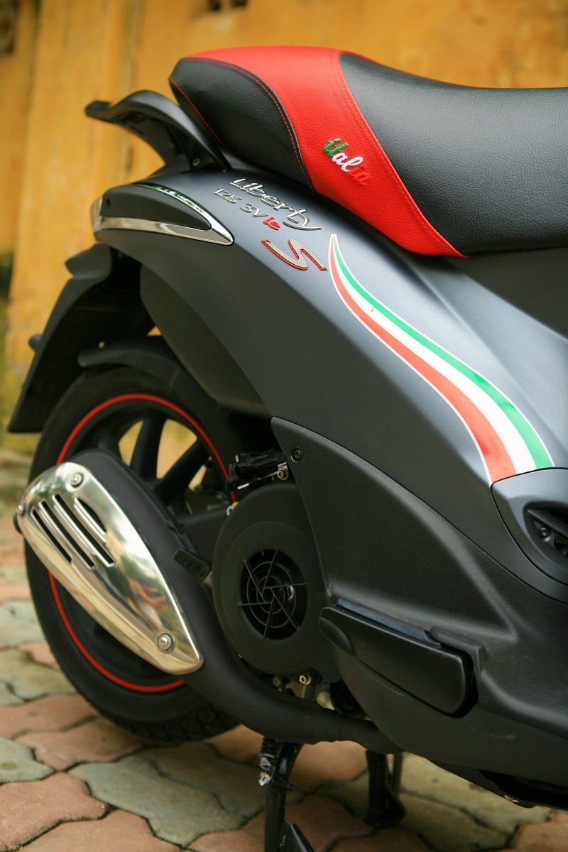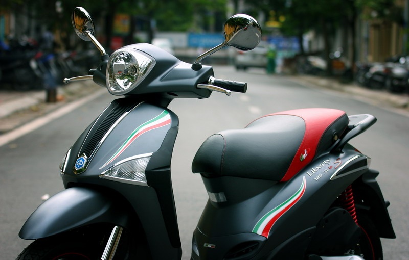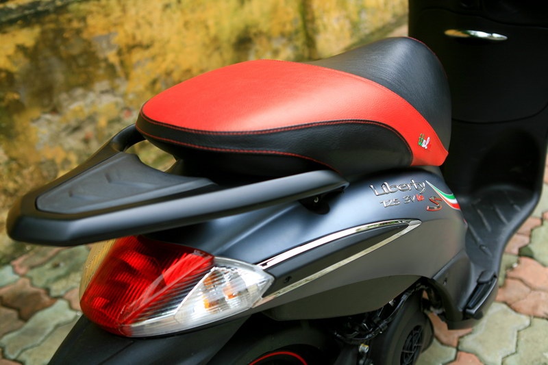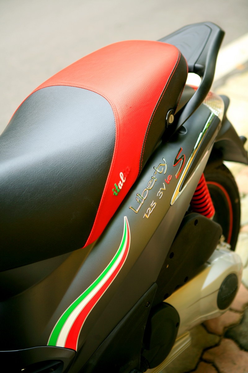 Phiên bản Italia của dòng xe Liberty S với kiểu yên phối 2 màu đỏ đen, làm tăng tính thể thao cho mẫu xe ga cá tính này.