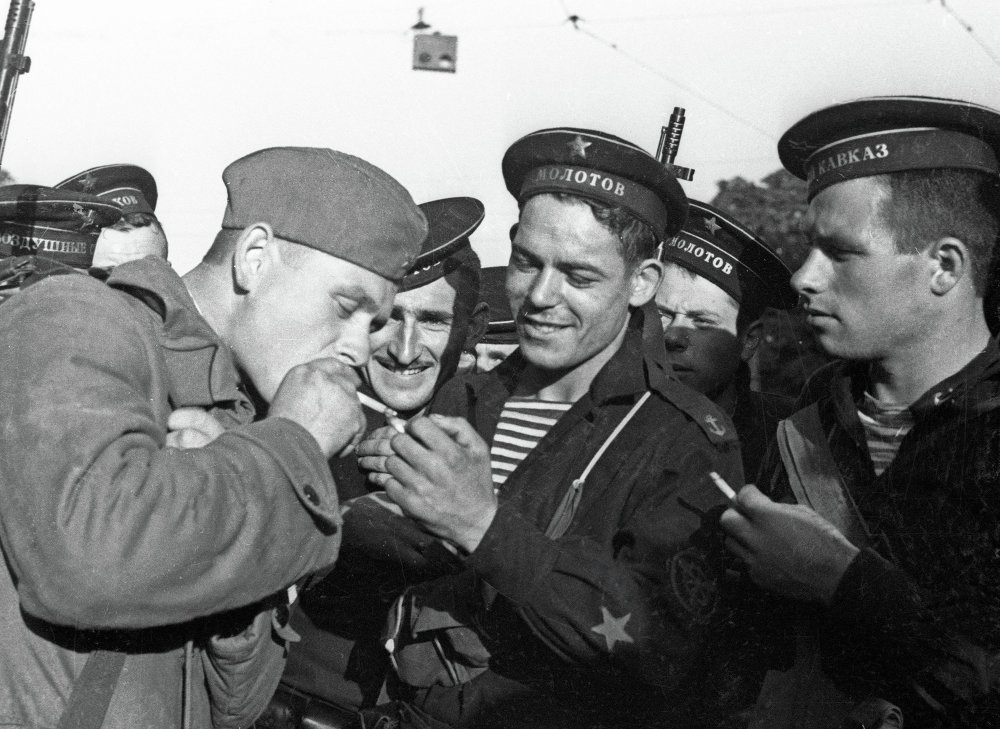 Thủy thủ thực hiện điệu nhảy truyền thống “Yablochko” trên tàu. Trong Chiến tranh Vệ quốc (1941-1945), nhiệm vụ của hạm đội là bảo vệ các căn cứ và phương tiện vận chuyển ven biển, mạng lưới thông tin và hỗ trợ không kích. Hạm đội tham gia các trận đánh ở Odessa, Sevastopol, Novorossiysk và Tuapse. Trong suốt cuộc chiến, Hạm đội Biển Đen thực hiện thành công 24 nhiệm vụ, gồm nhấn chìm và tấn công 1.374 tàu của phe Trục.