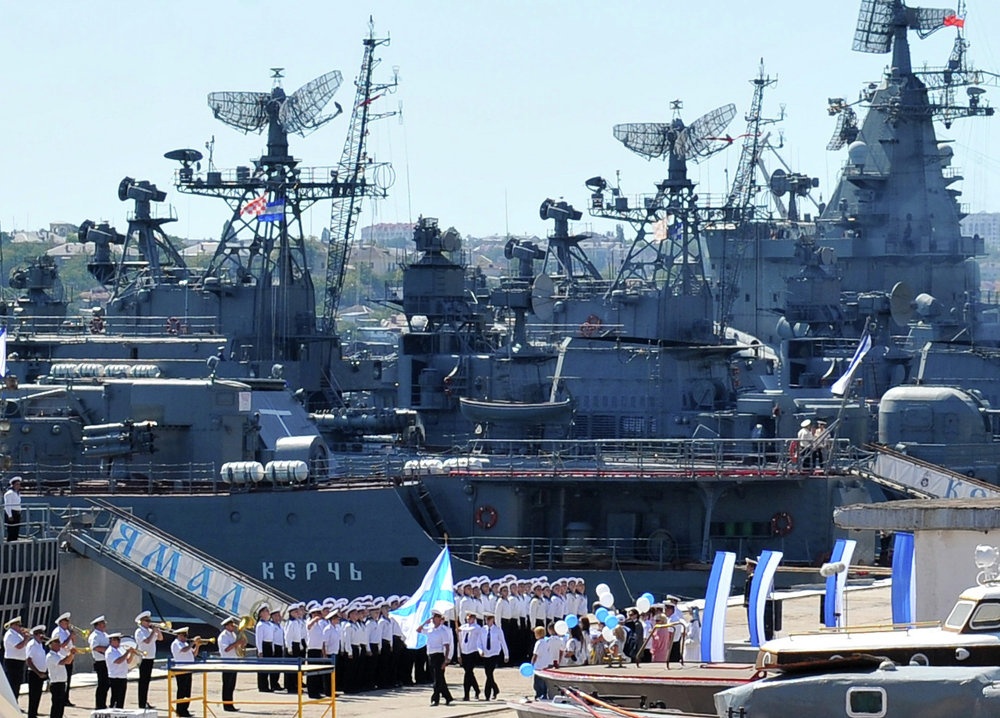 | Các chiến sĩ hải quân trong lễ kỷ niệm 230 năm thành lập hạm đội. Hiện nay Hạm đội Biển Đen có các tàu ngầm chạy bằng diesel, tàu tên lửa, tàu chống ngầm cùng phi đội chiến đấu và lực lượng bờ biển. Lực lượng trên bờ gồm 11.000 nhân viên, 41 tàu chiến và 3 tàu ngầm. Theo kế hoạch của Nga, trước năm 2020, Hạm đội Biển Đen sẽ tiếp nhận gần 30 tàu chiến các loại cùng tàu hỗ trợ. Cuối năm 2016, quân đội sẽ thành lập các đơn vị tàu ngầm gồm 6 tàu Varshvyanka. Năm 2017, quá trình xây dựng cảng mới tại thành phố Novorossiysk cũng sẽ kết thúc. |